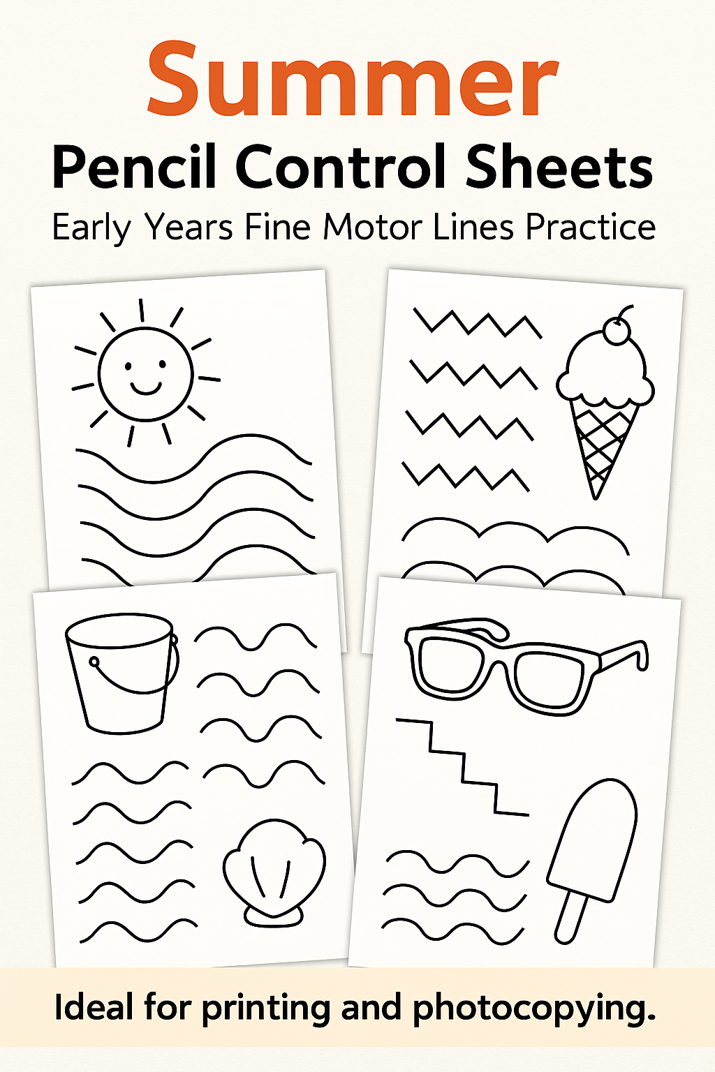 Summer Pencil Control Sheets – Early Years Fine Motor Lines Practice