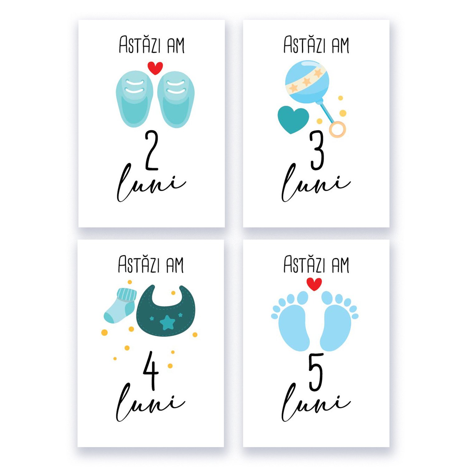 Set 20 cartonase aniversare de tip baby milestone pentru fotografierea bebelusului tau, model baieti