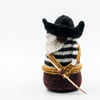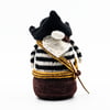 yarn needle, removable stitch markers, roving/polyfill stuffing, weighted stuffing, miniature sword approx. 3.5” / 9 cm OR grey yarn (C5) for knitting sword + pipe cleaner