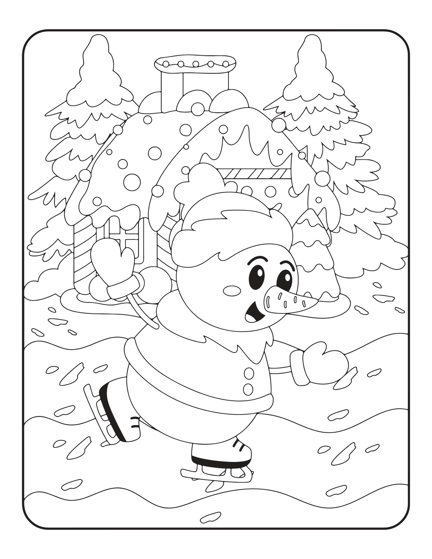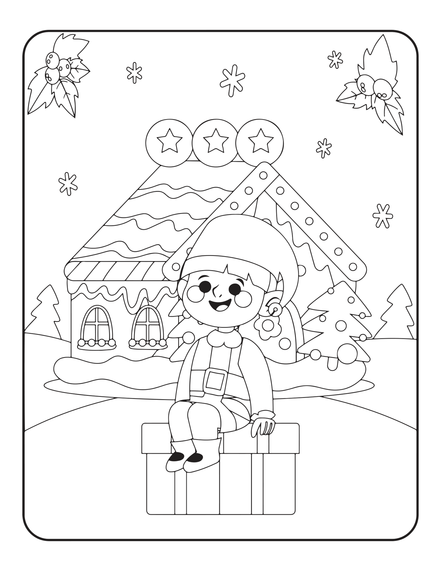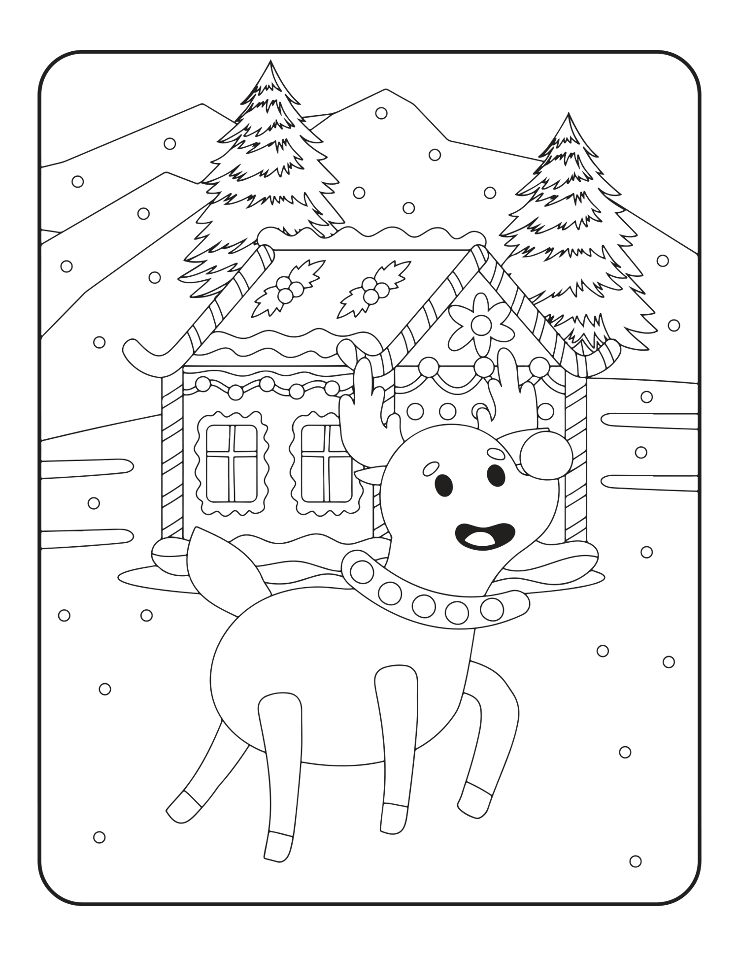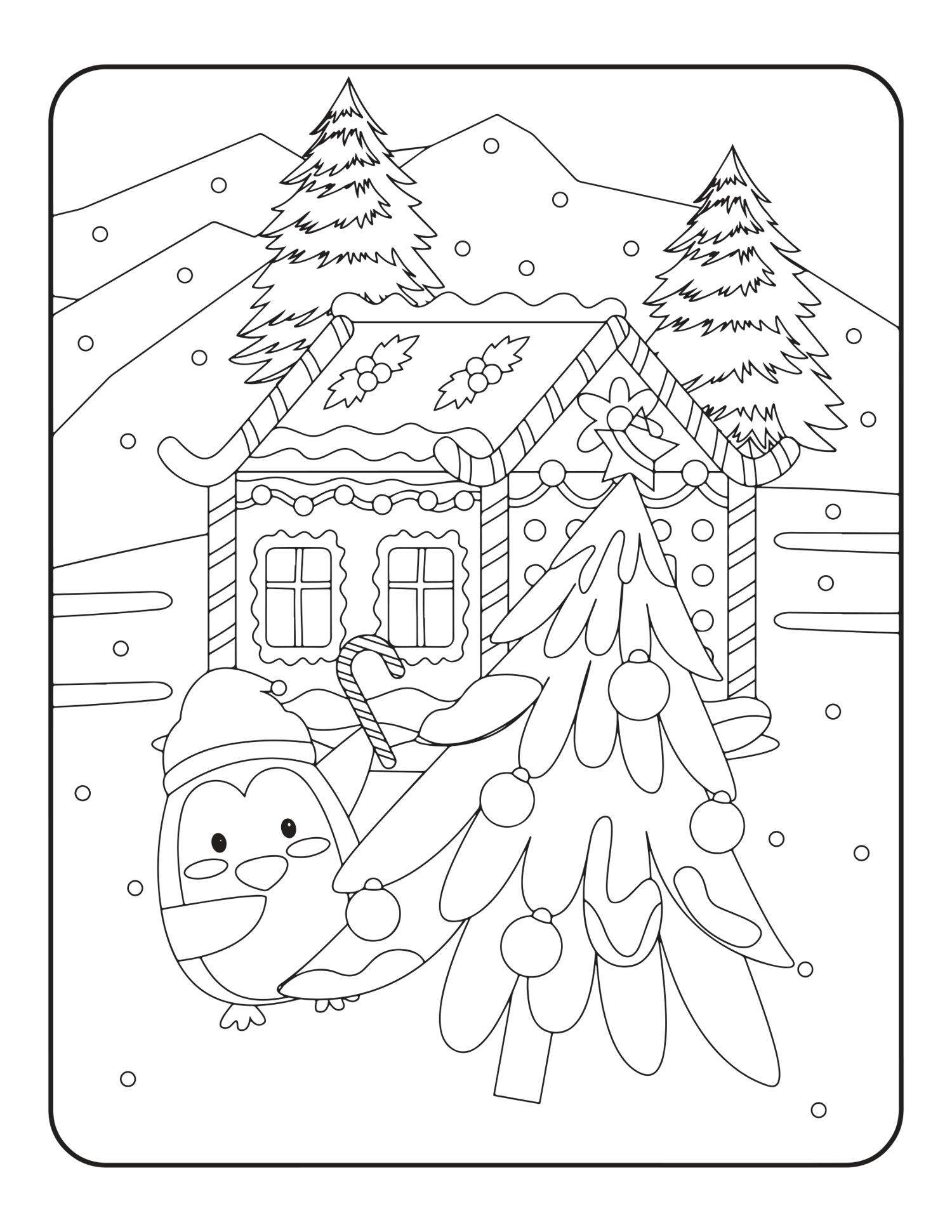 Whimsical Characters: Fun pages featuring Santa, reindeer, elves, and snowmen. Festive Sweets: Drawings of cupcakes, cookies, and other holiday treats.