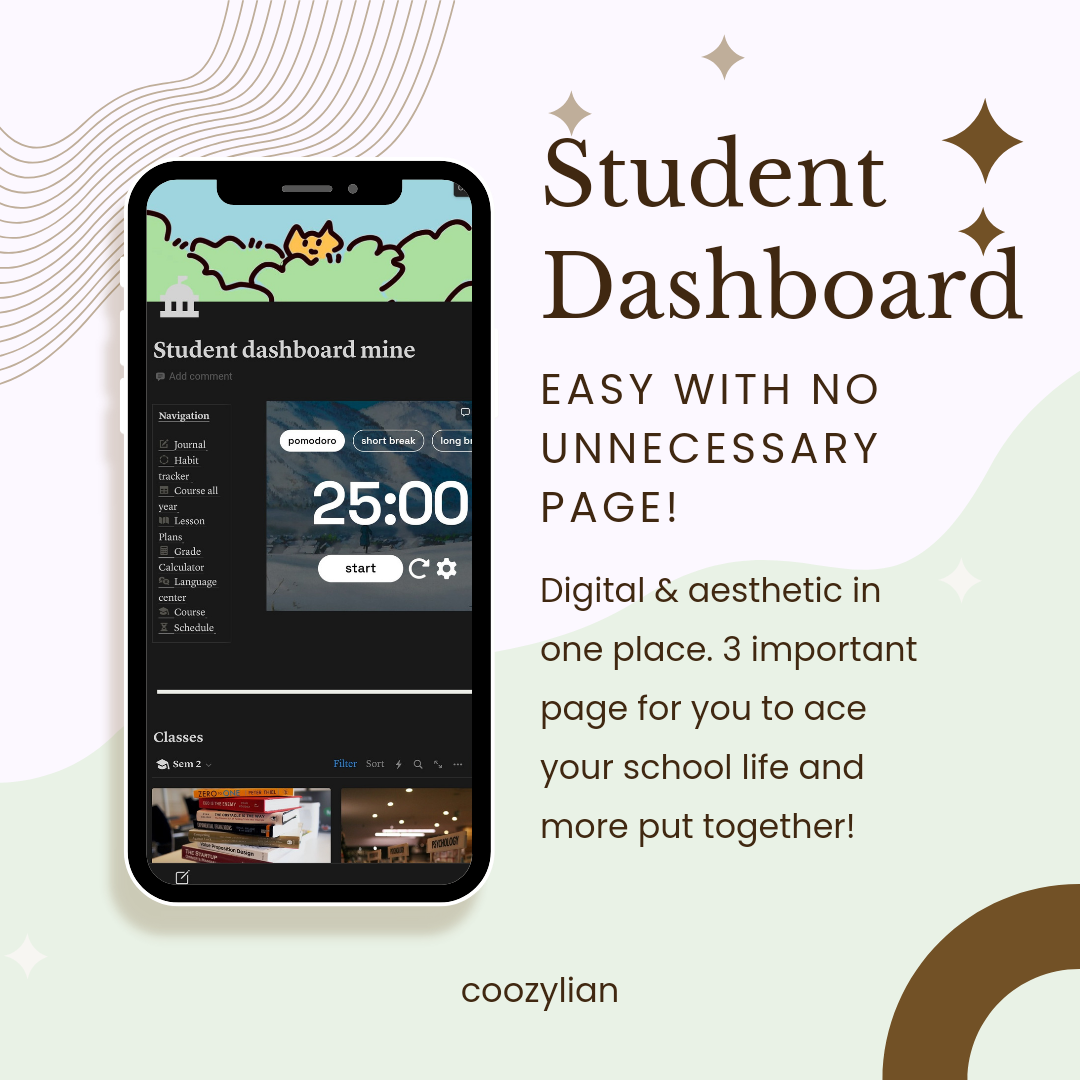 The Ultimate Notion Bundle template series: student dashboard