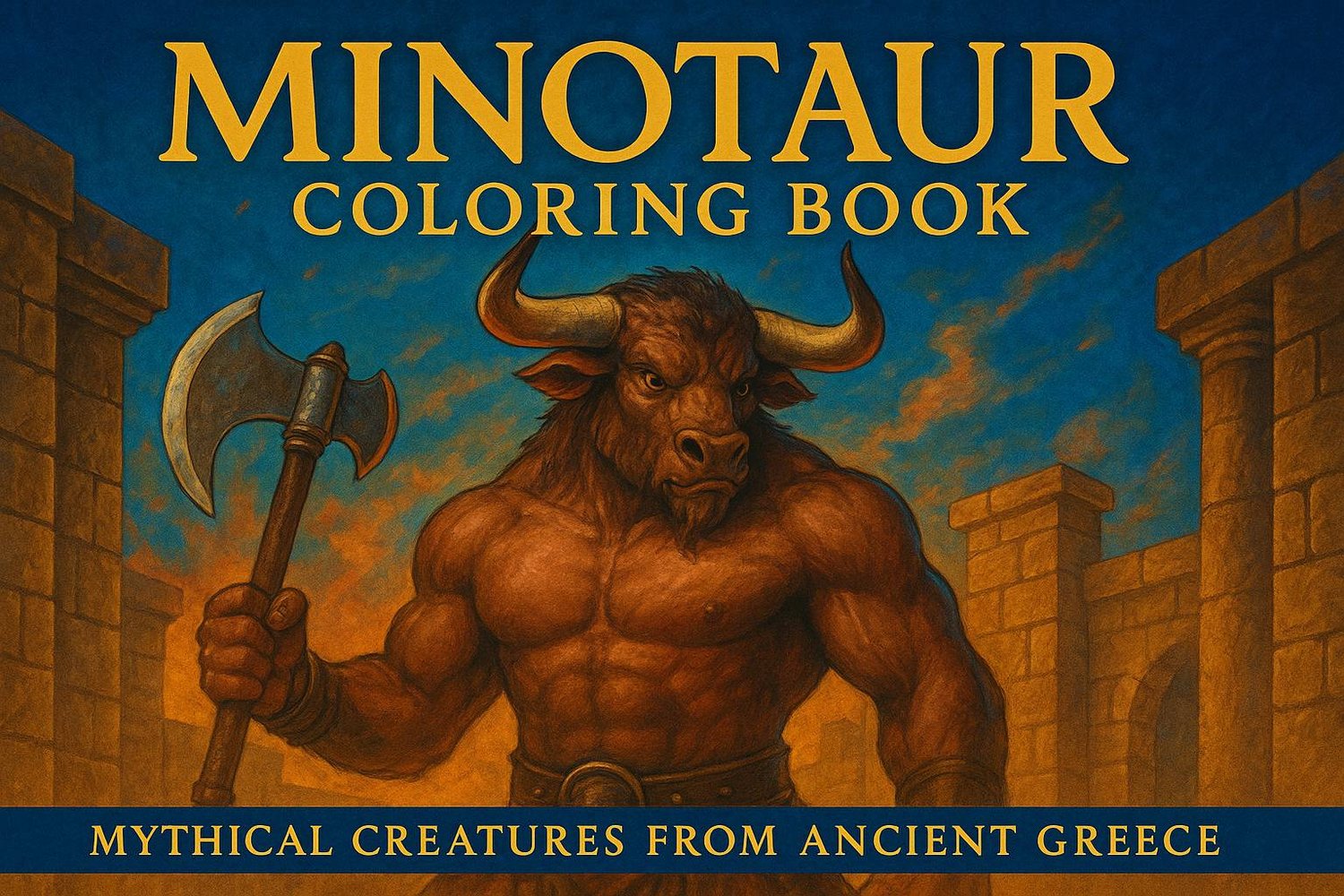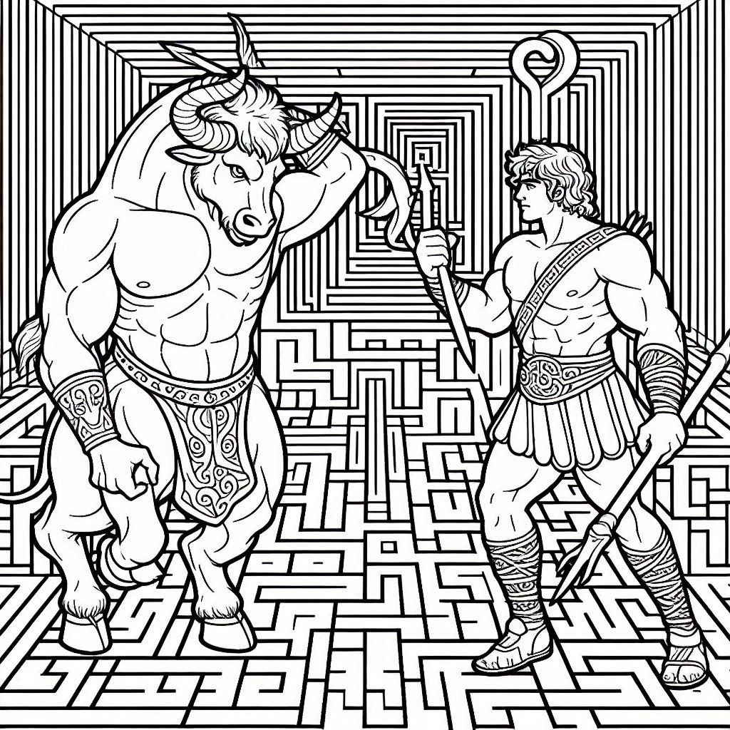 Minotaur, 64 designs, coloring ebook, digital printable product, instantly download