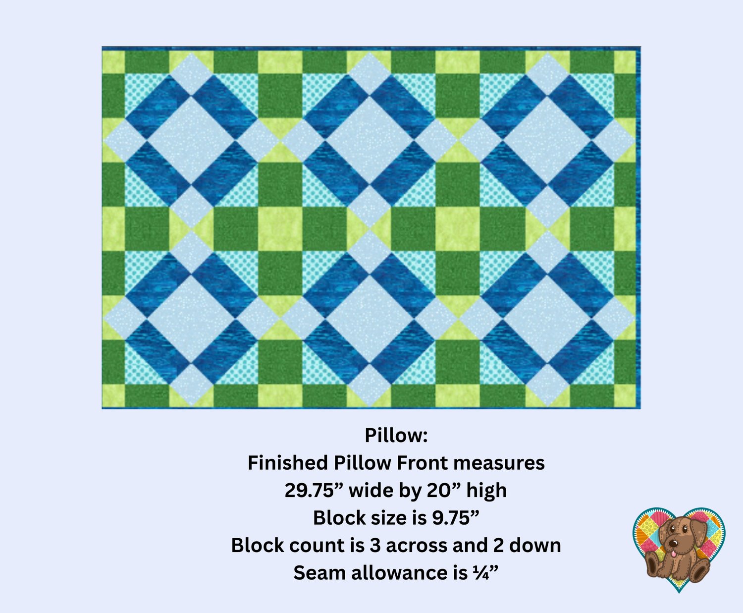 Pillow sham quilt front is 20" X 29.75" Blocks are traditional pieced blocks.