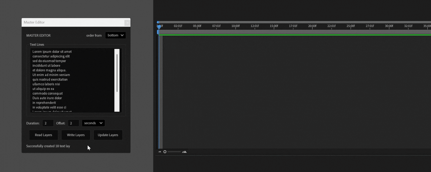 Write, read, and update all your text layers in bulk - perfect for subtitles, lower thirds, and text-heavy projects