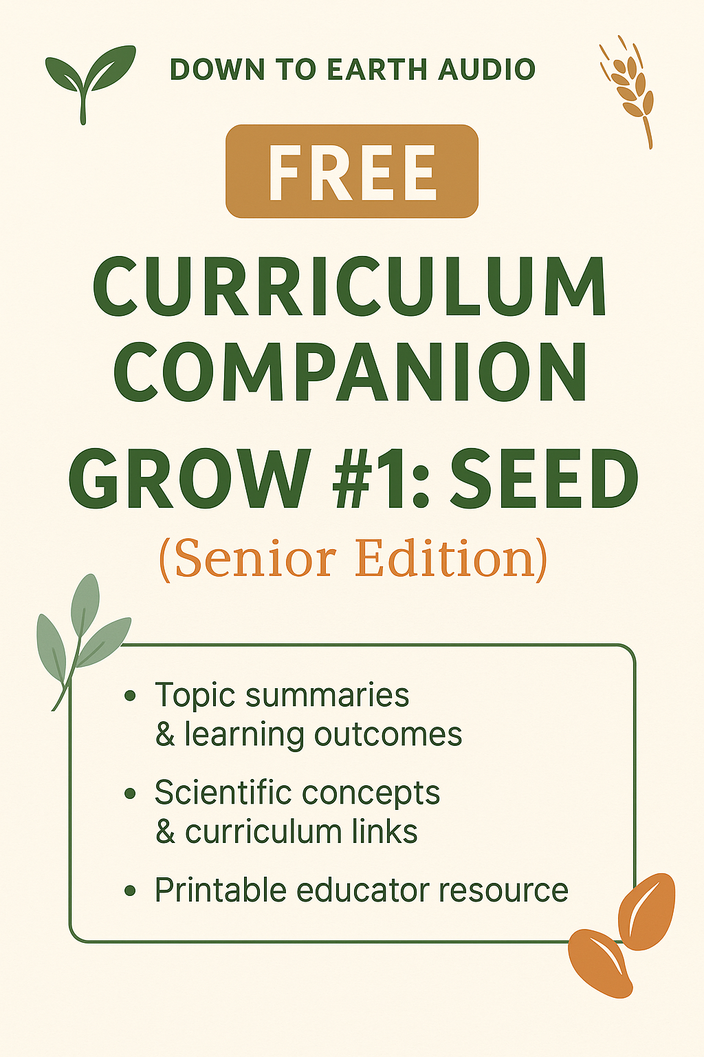 This printable Curriculum & Learning Guide is designed to accompany the audio content of Grow #1: Seed — Senior Edition. Ideal for parents, teachers, and homeschoolers who want to structure learning or map the content to academic outcomes.