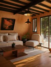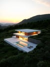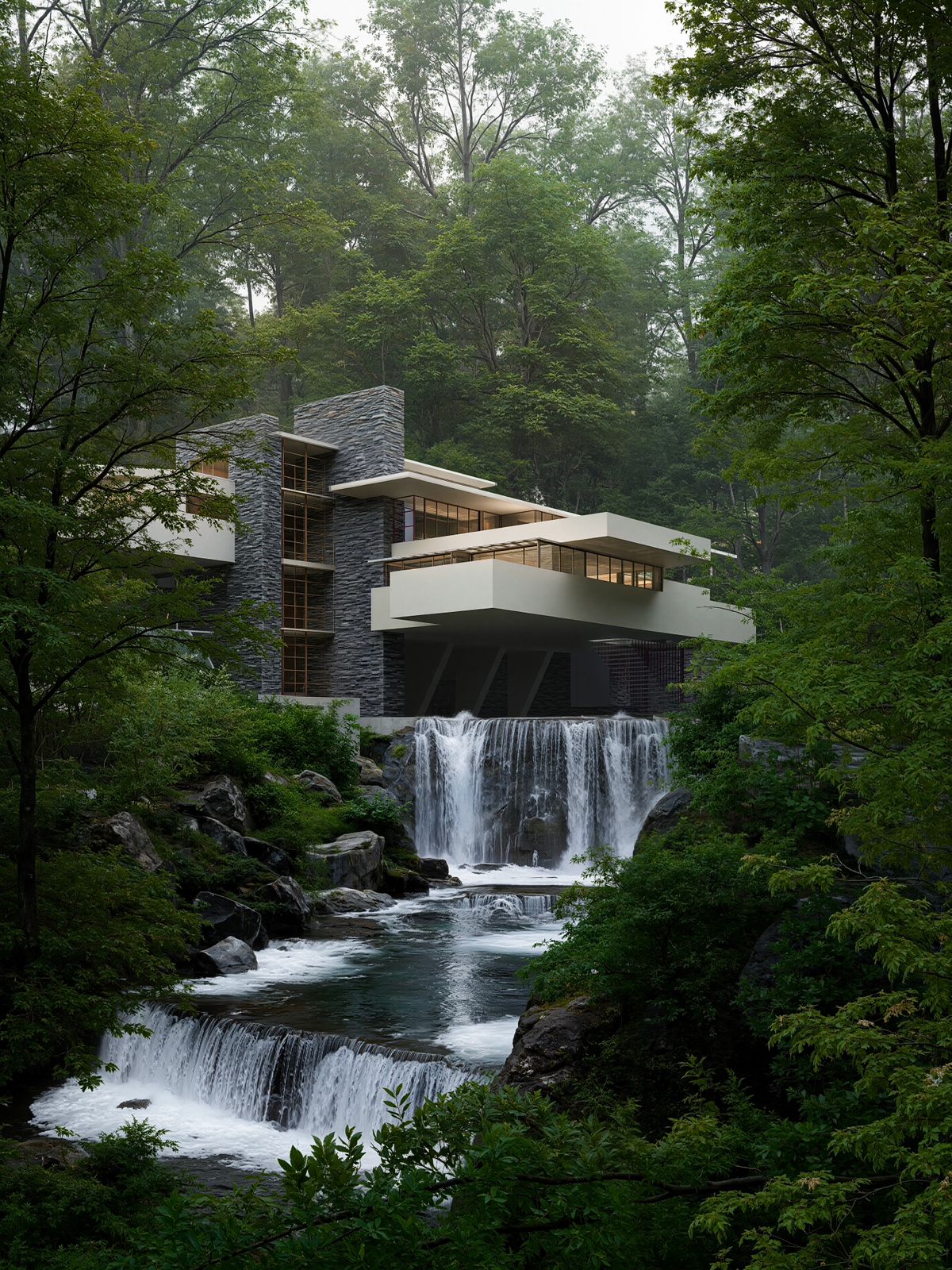 1.Waterfall, realistic atmosphere, nature and mood which is perfectly blending with the house, with waterfall particles and AI style transfer > realistic > Spring, you can create magical images with D5!