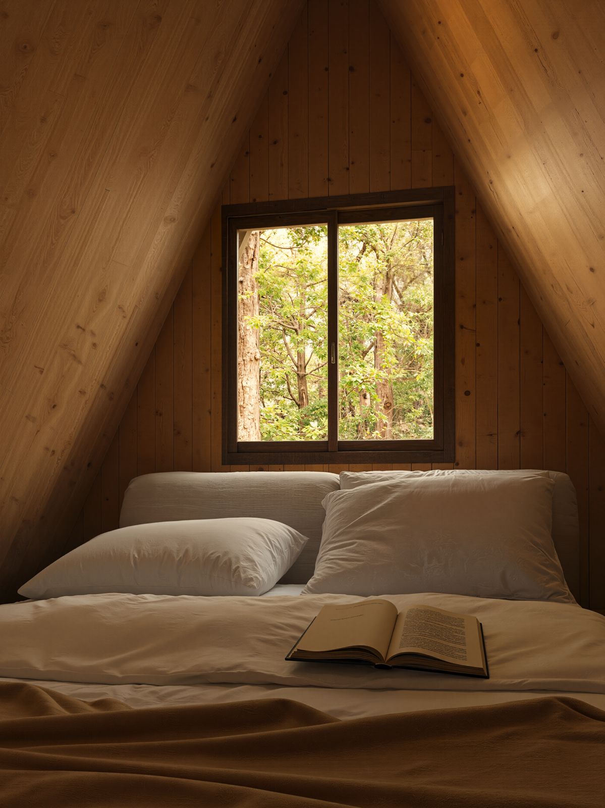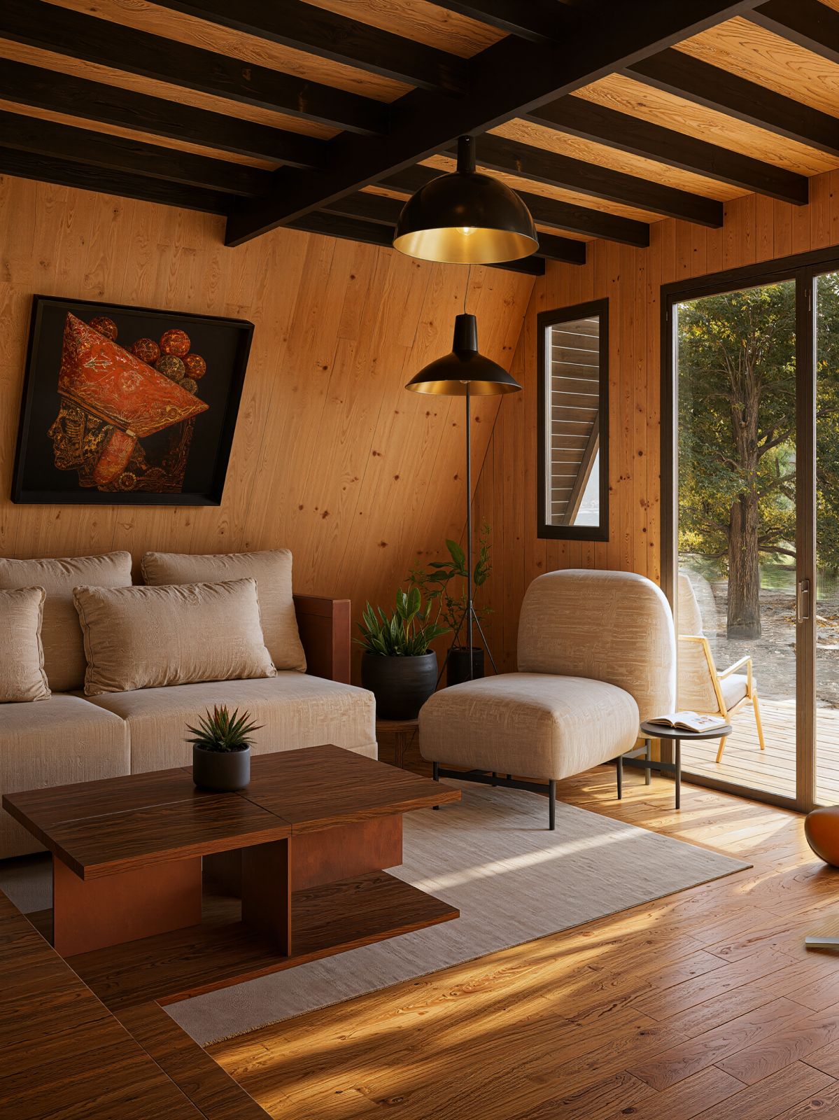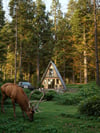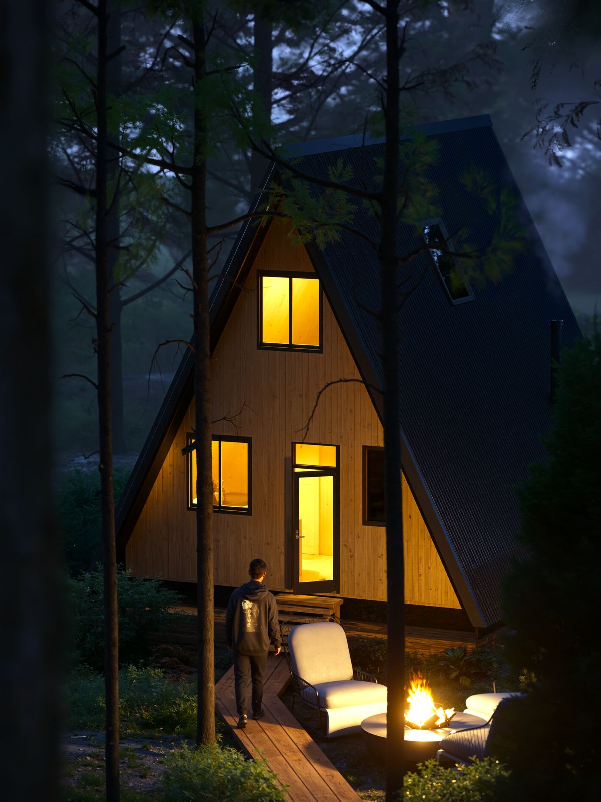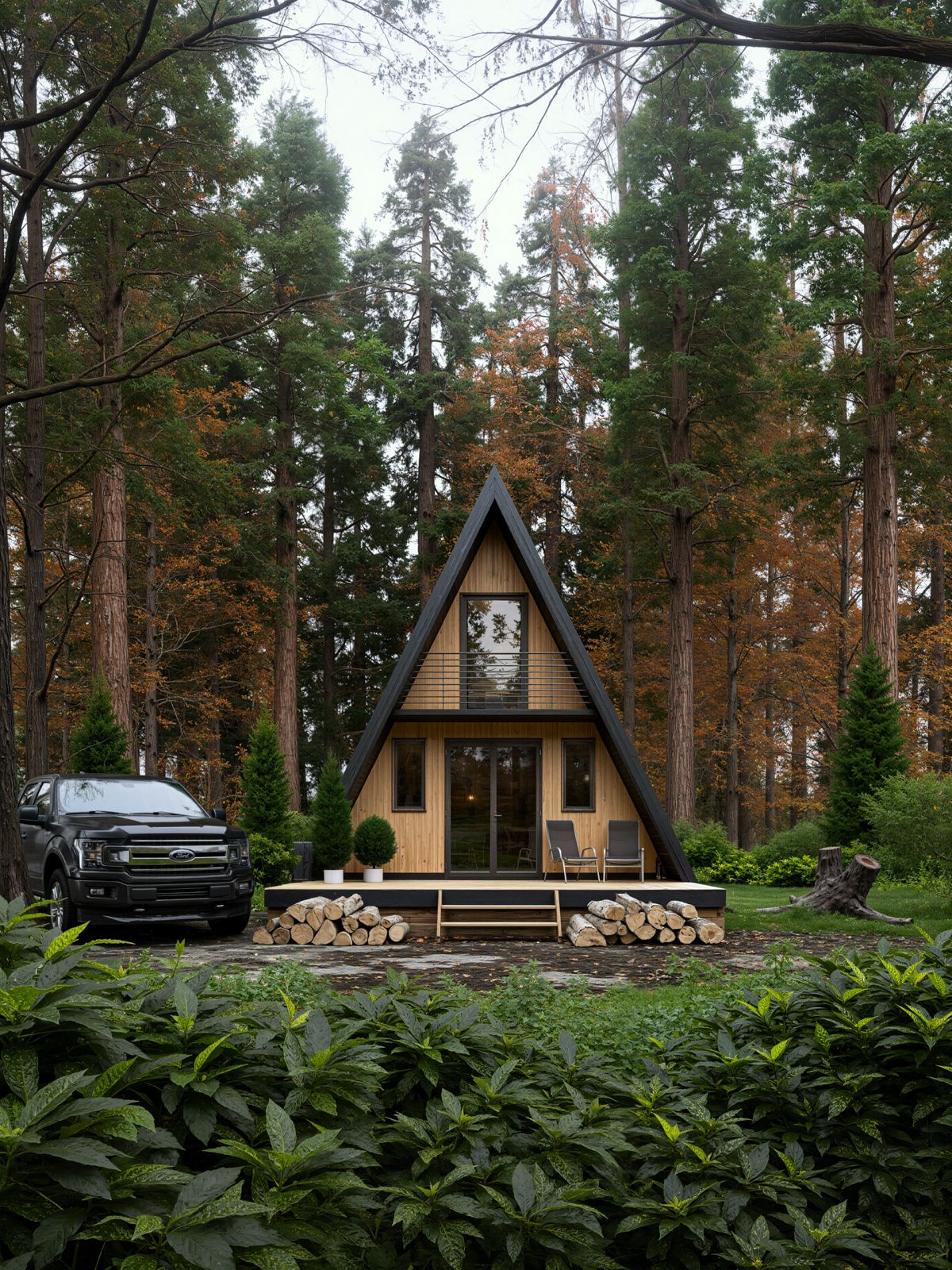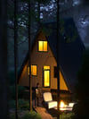 2.A shape forest cabin scene - feel the forest, best realistic trees, perfect colors, coziness and realism in one file with similar AI post process.
