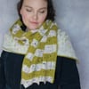 Knitted in beautiful airy, naturally-dyed yarn from woollenflower, Quincythia is a light but cosy shawl, perfect for the changing seasons. Named after the spring plants whose flower colour matches the yarn (quince and forsythia), the shawl is mainly knitted in soothing garter stitch, with columns of slipped stitches and a ‘double-pass’ section to keep the knitter’s interest piqued.