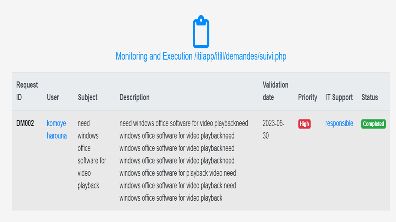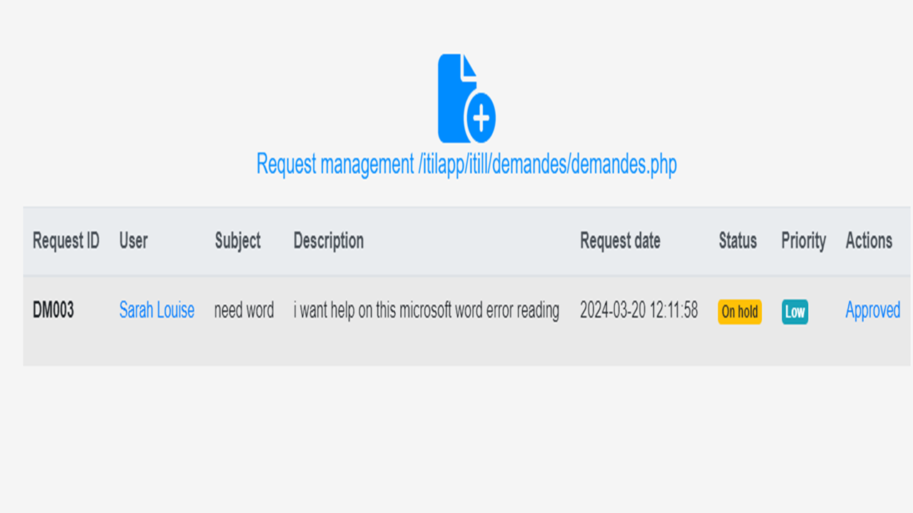 - Open a web browser and navigate to the following URL: http://localhost/itilapp/itill