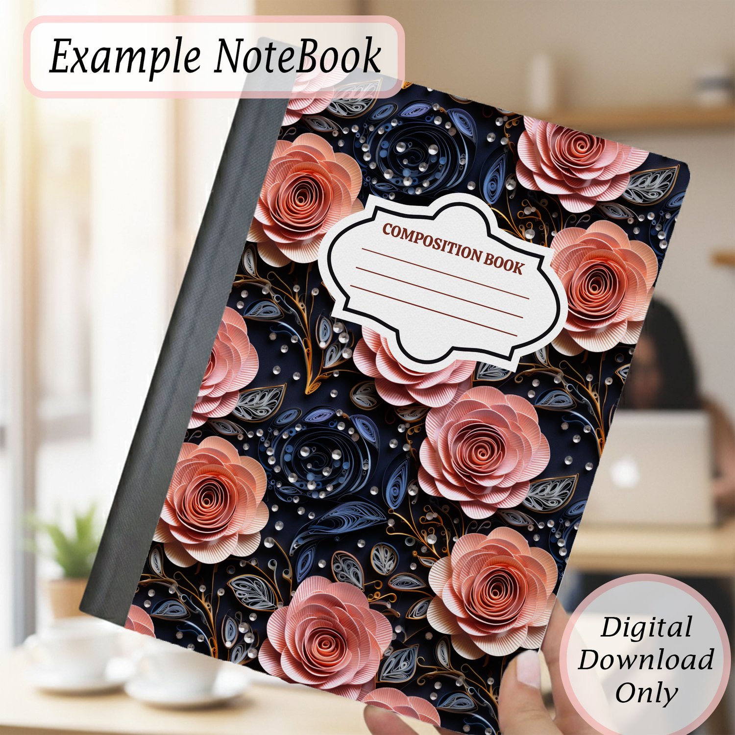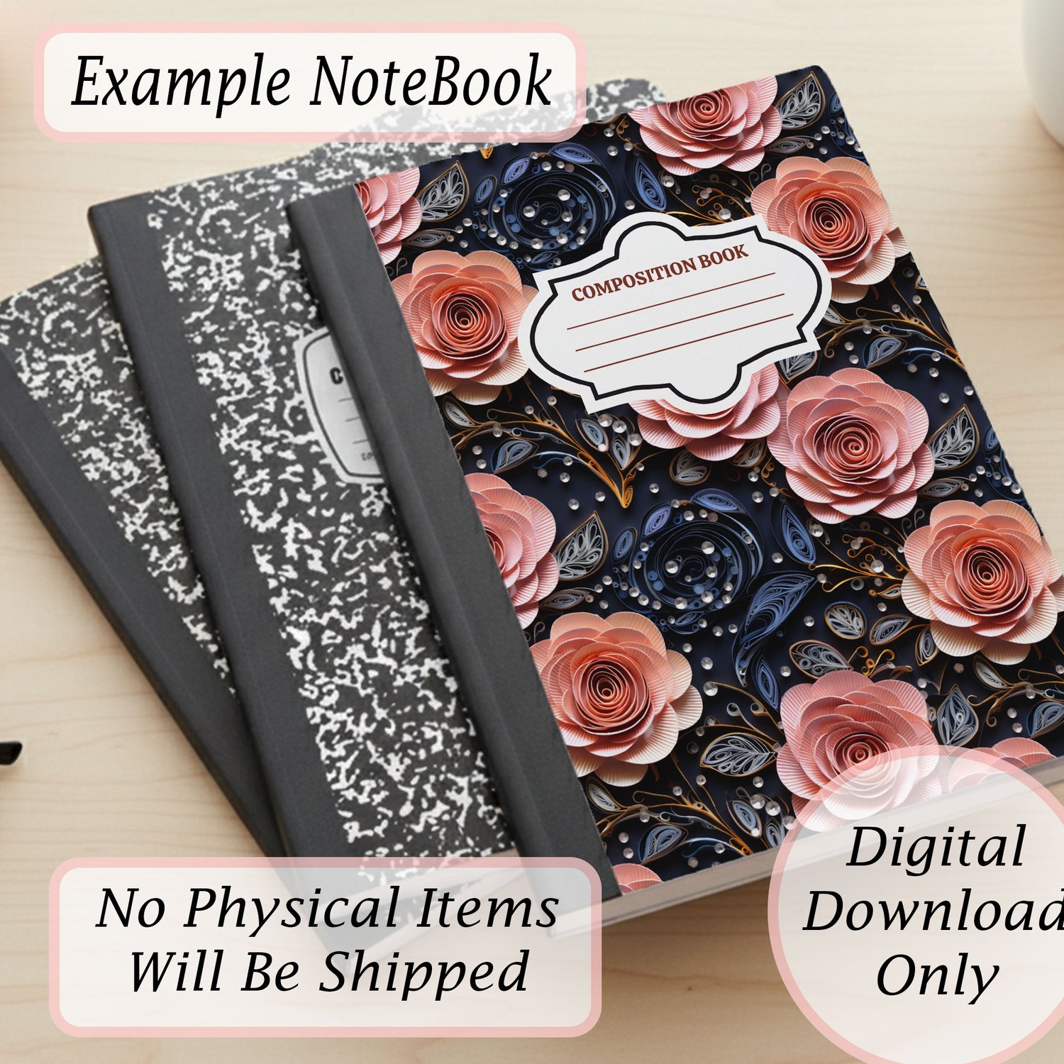 Transform your notebook into something unique and stylish with this printable composition notebook cover! Designed at 6.9 x 10 inches to fit standard 7.5 x 9.75 composition books, this high-quality digital download includes two PNG files—one with a label and one without—so you can personalize your notebook exactly the way you like. Perfect for school supplies, journaling, planners, DIY crafts, and personalized gifts.