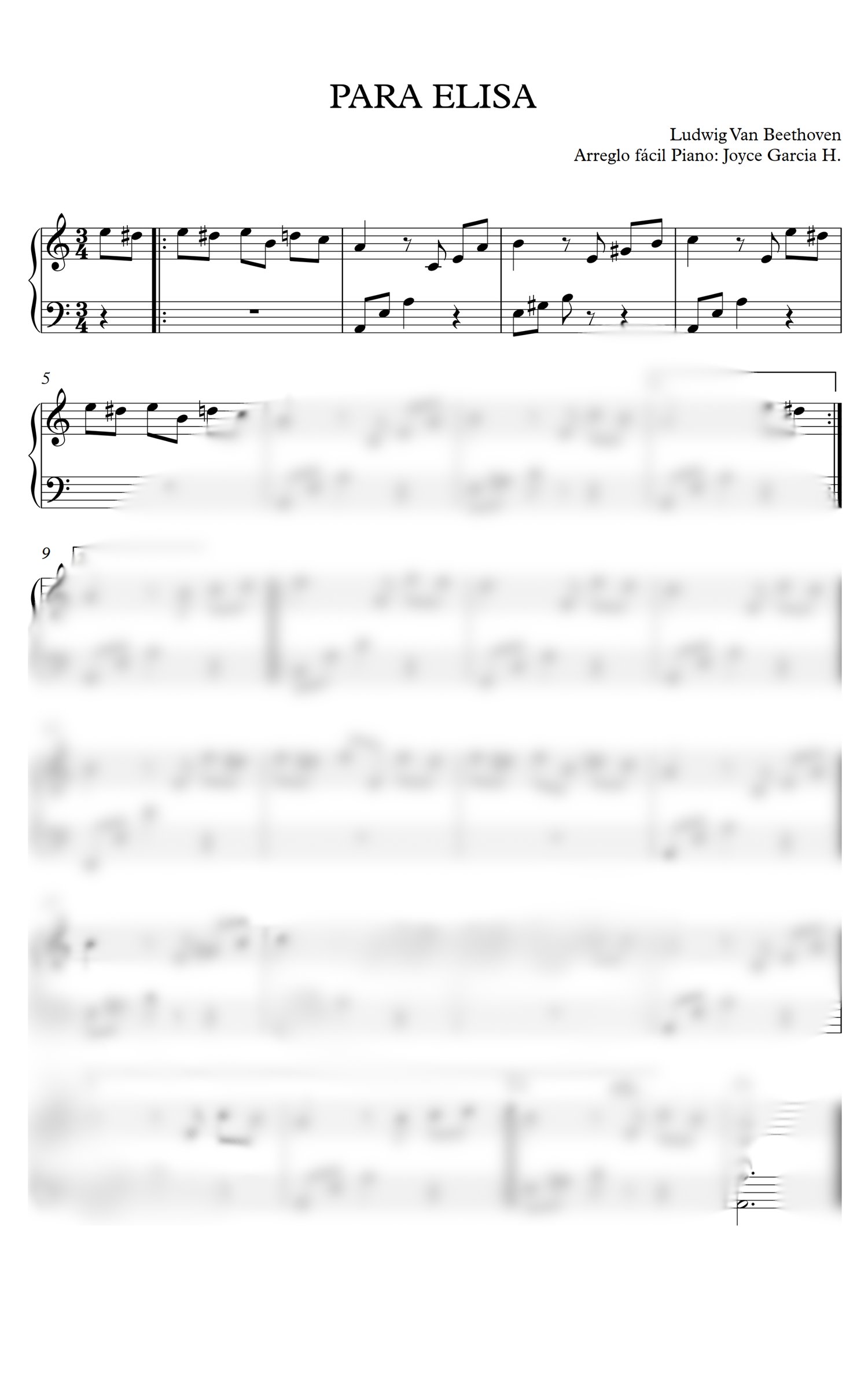 🎼 Para Elisa (Beethoven) - Partitura Piano Versión fácil PDF
