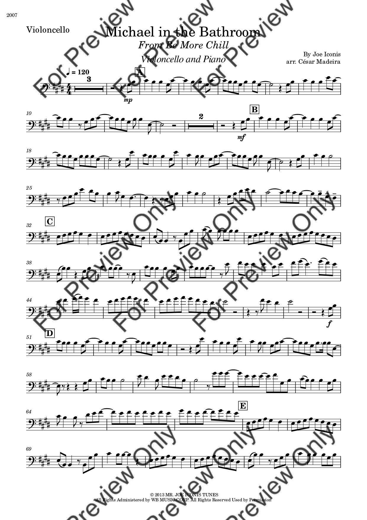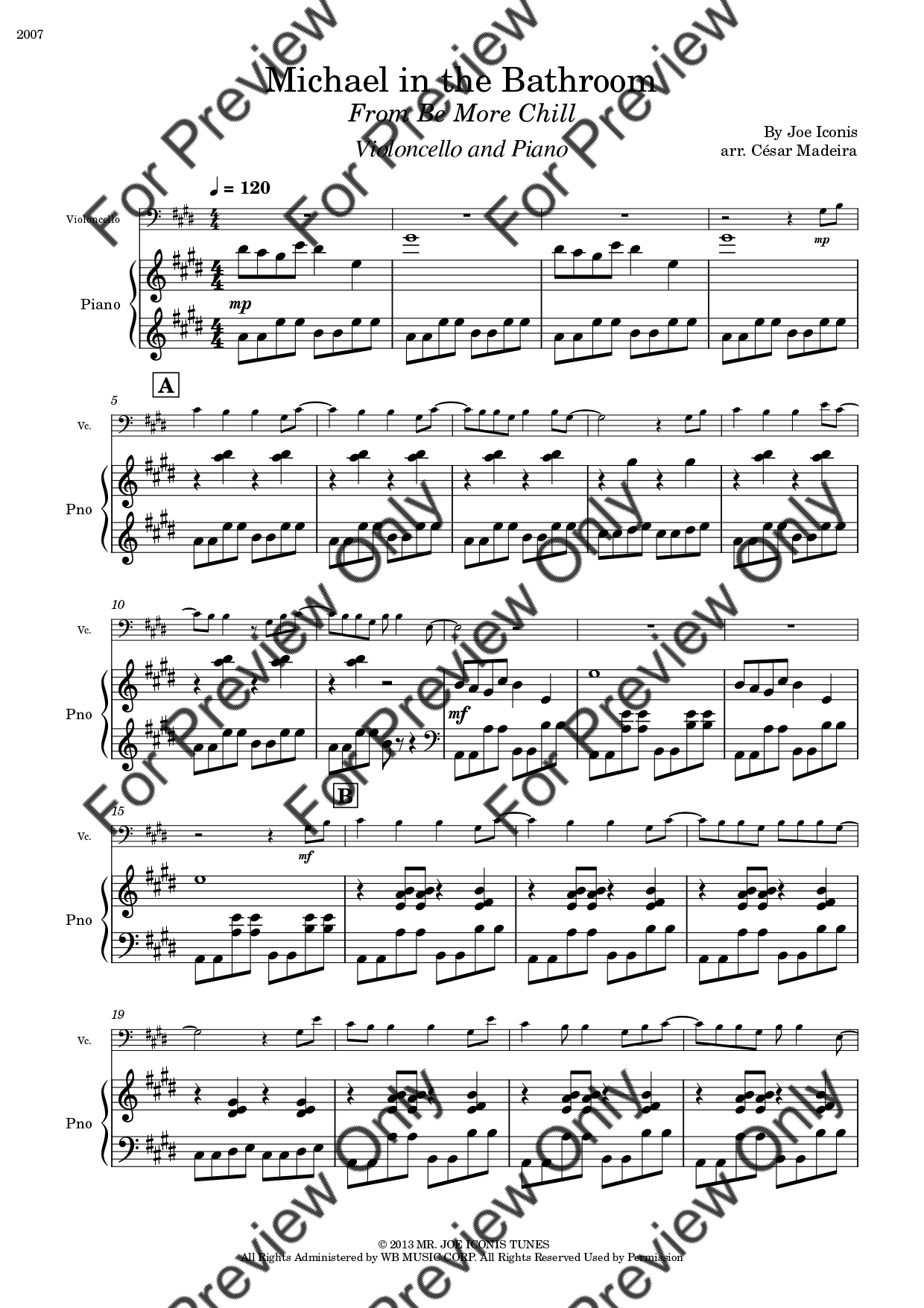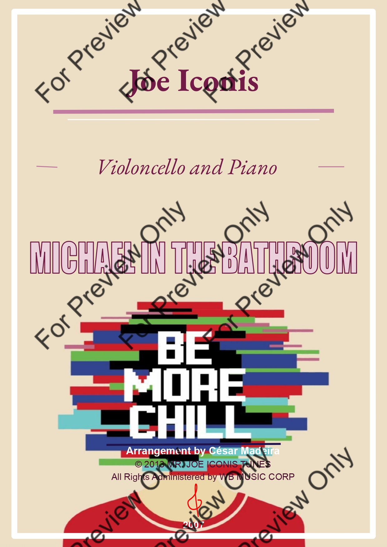 Michael In The Bathroom from Be More Chill by Joe Iconis. Arrangement for Violoncello and Piano. With Full Score and Individual Parts. Have fun!