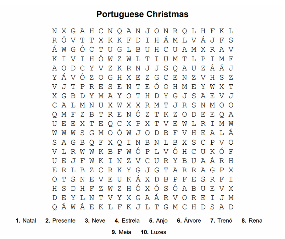 Practice your Portuguese vocabulary with this Christmas wordsearch
