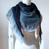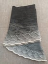The shawl is knitted from edge to edge, starting from the straight edge, progressing through the body and ending with the cable panel on the outer rim.