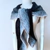There is a silver lining to all life’s problems, you just have to see it. Like this shawl; the body is like a big heavy cloud that covers you in it’s grip, and then there’s the silver lining that is the cable brim and you realize that the hug is really a good warming and loving hug that shields you from the cold and whistling wind.
