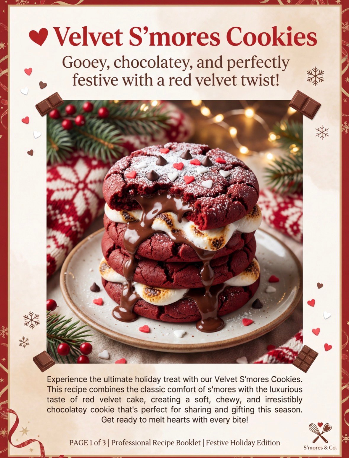 ❤️ Valentine’s Day Velvet S’mores Cookies Recipe | Red Velvet, Gooey, Romantic Dessert PDF