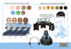 four different skin tones, three eye colours and 7 hair colours)
