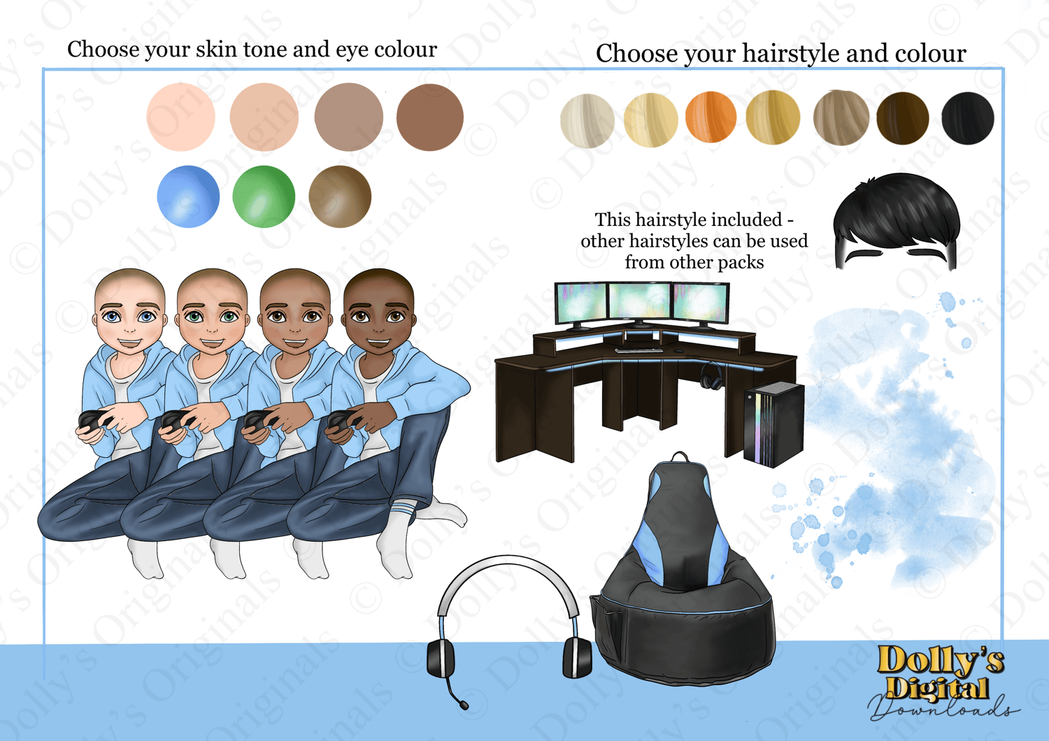 Instant digital download of our Gaming Teen Boy in Light Blue Bundle PNG (22 PNG’s)