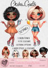 Besties, friends, Chibi dolls, 92 PNGs, clipart, hair, eye, clothing options, sublimation, print, PNG. 5 skin tones