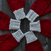 Pattern contains a full breakdown of yardage by colour and size, and a complete schematic.
