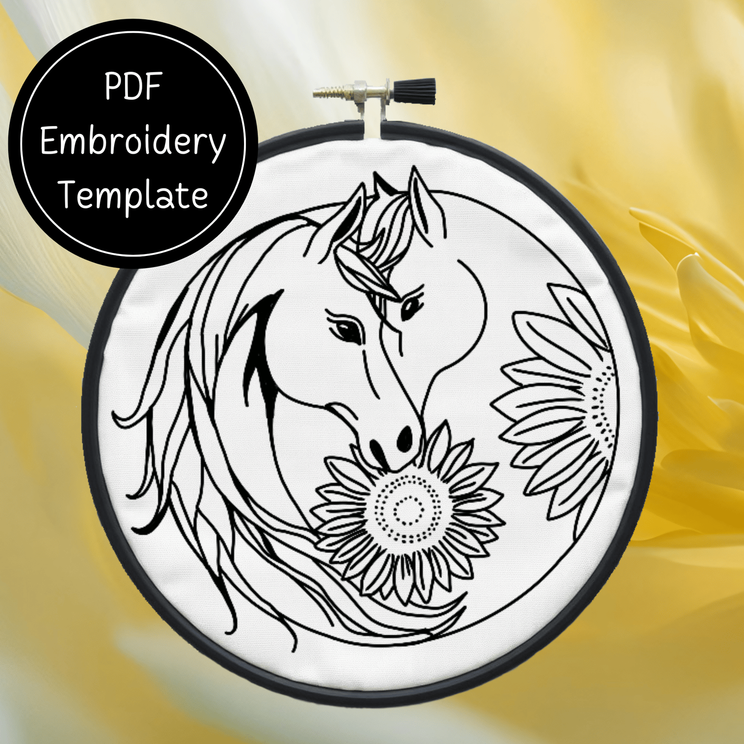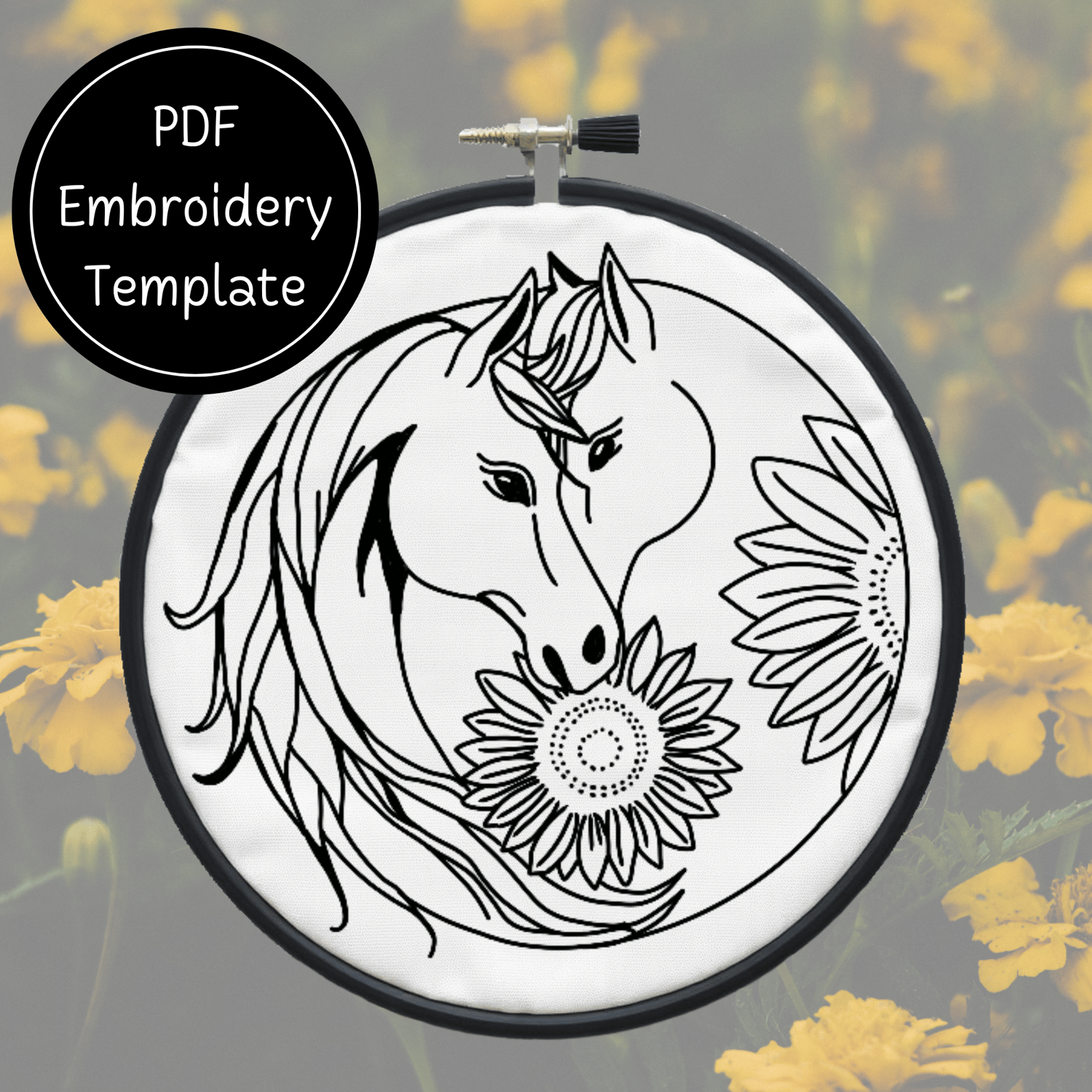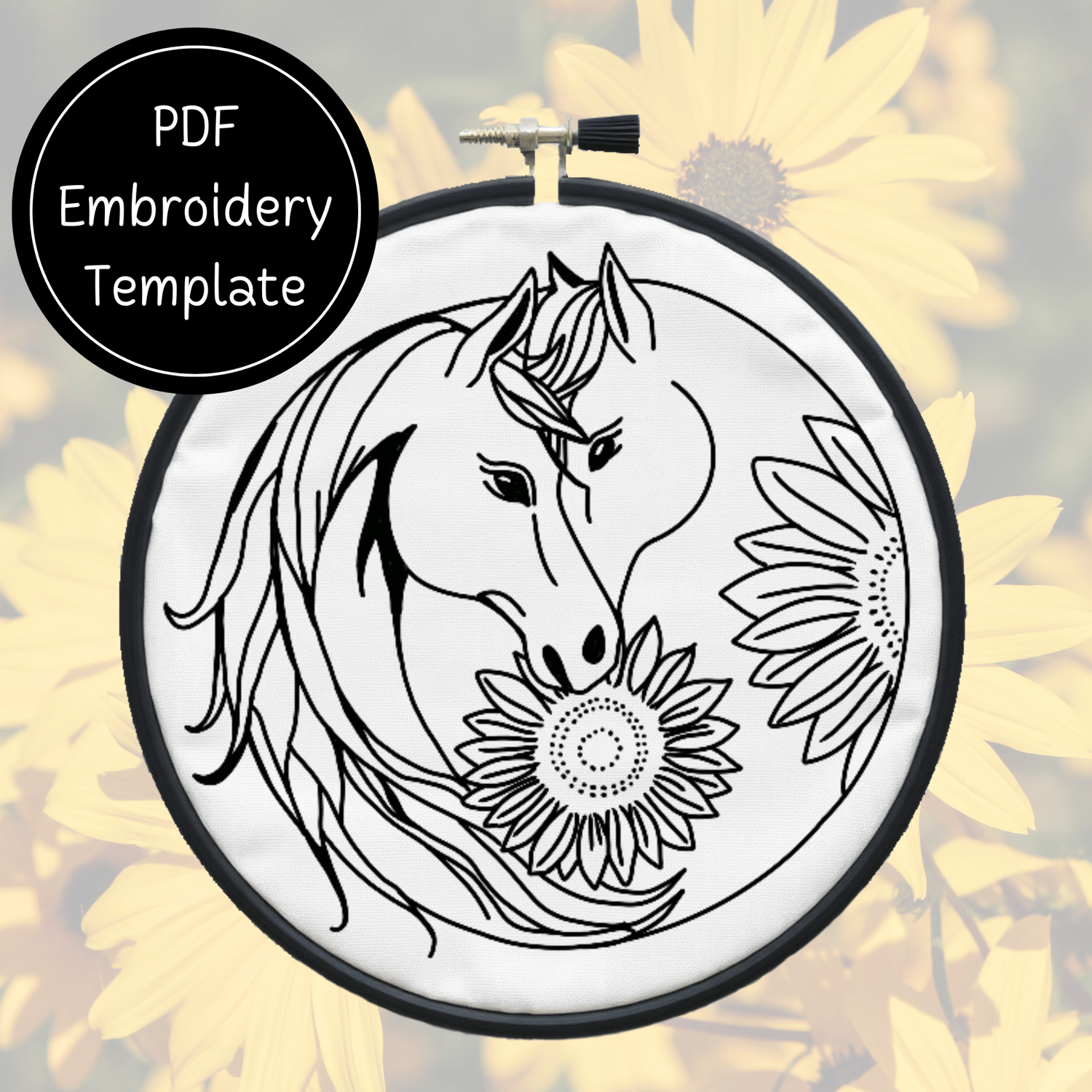 Yin Yang Horse Sunflowers Embroidery Template PDF - DIY Horse Design For Hand Stitching - Instant Download
