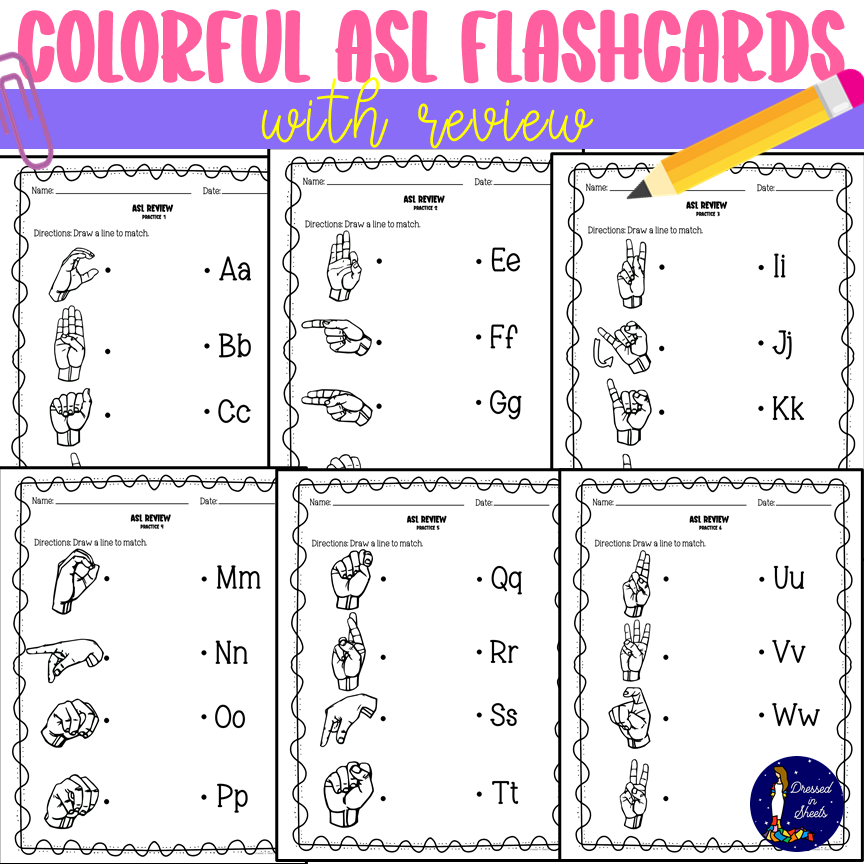 Includes a review in which each page will have 4 ASL signs and students will match to the English equivalent.