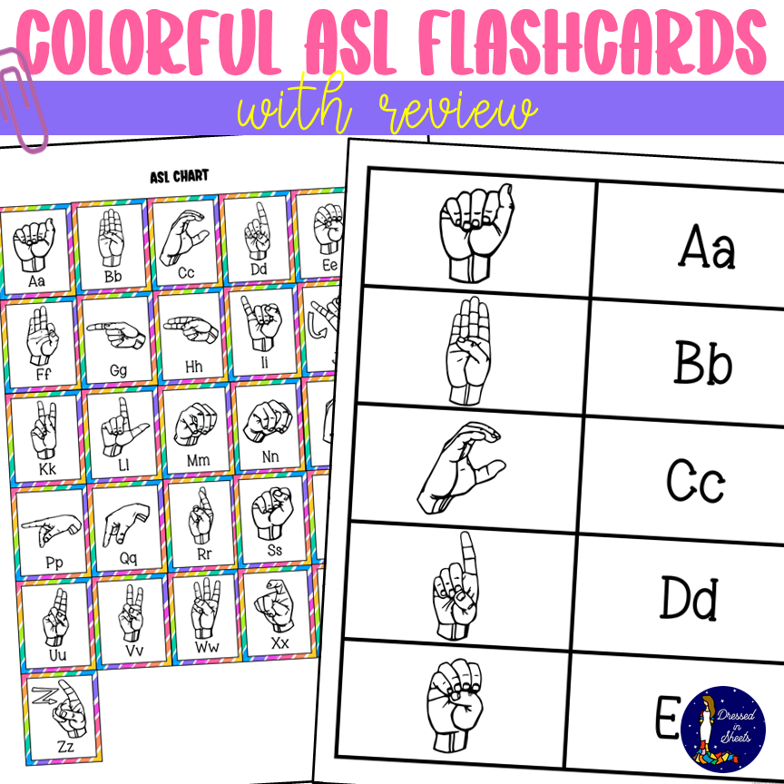With the ASL flashcards students can practice and quiz each other. They can use their index finger to hide the letter underneath to quiz their classmates.
