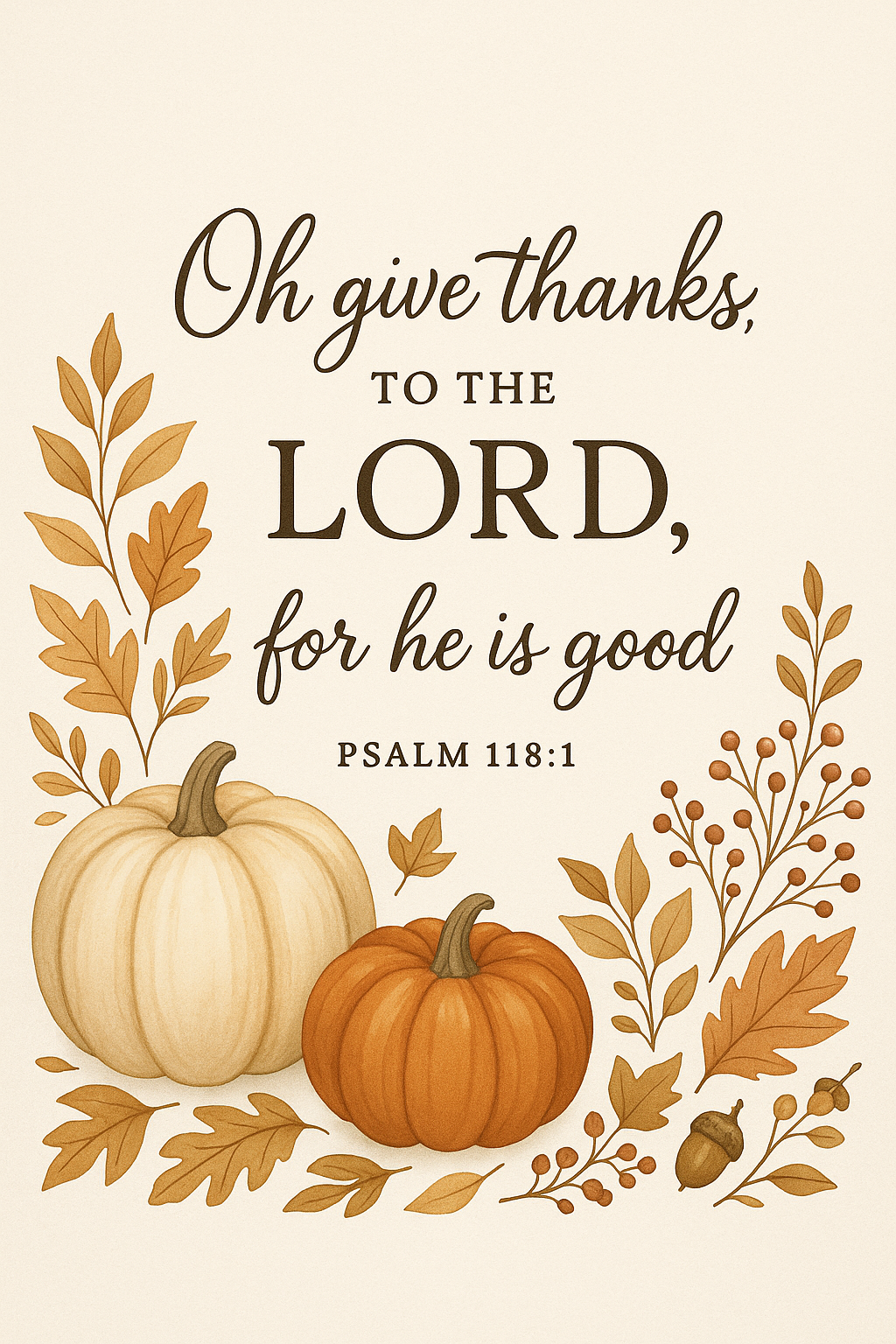 π Oh Give Thanks β Psalm 118:1 Pumpkin & Leaf Autumn Poster