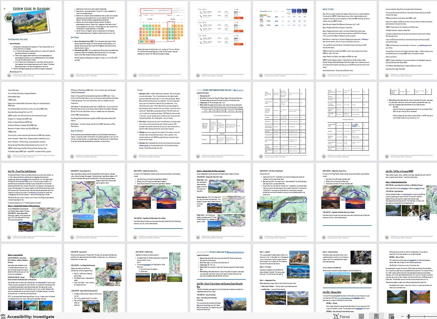 Your custom guide will be designed exactly to your liking while offering flexibility to pivot as things pop up on your trip like bad weather, switching from adventure mode to relax mode, etc. In the guide you will find the following: