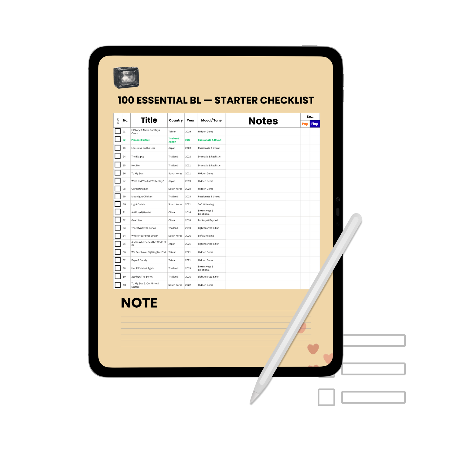 Designed by an actual BL filmmaker and content creator (Aam Anusorn), this checklist helps you track your watch history with style.