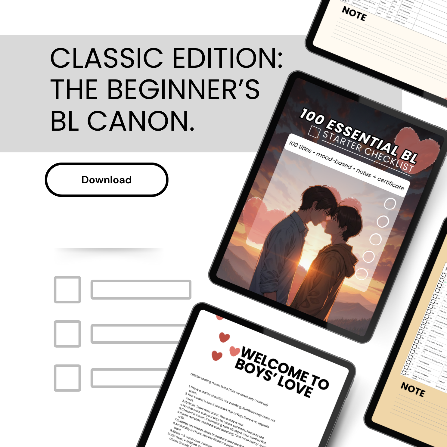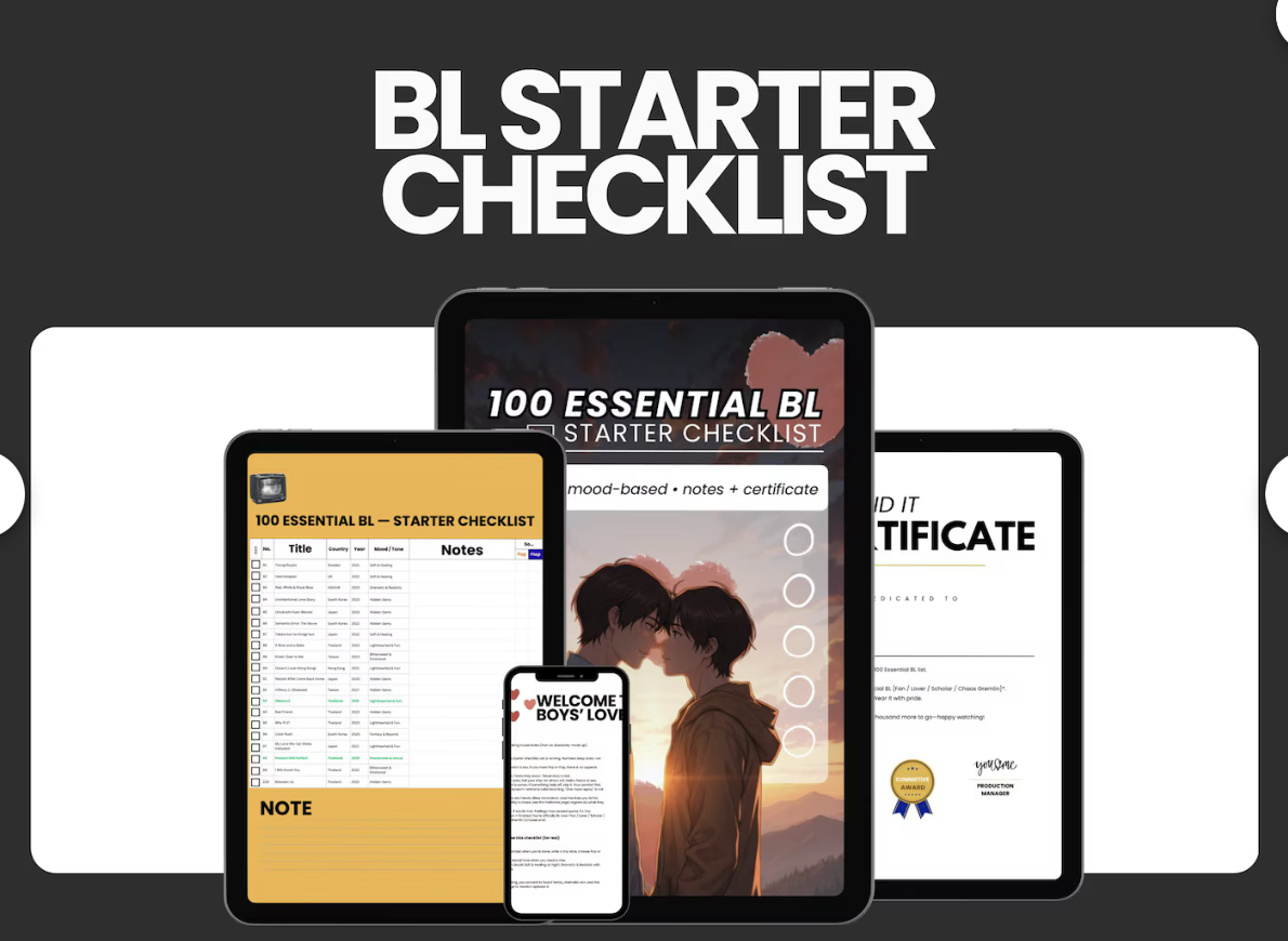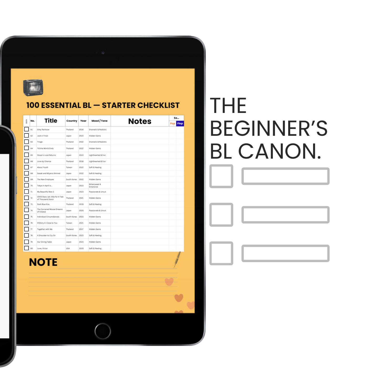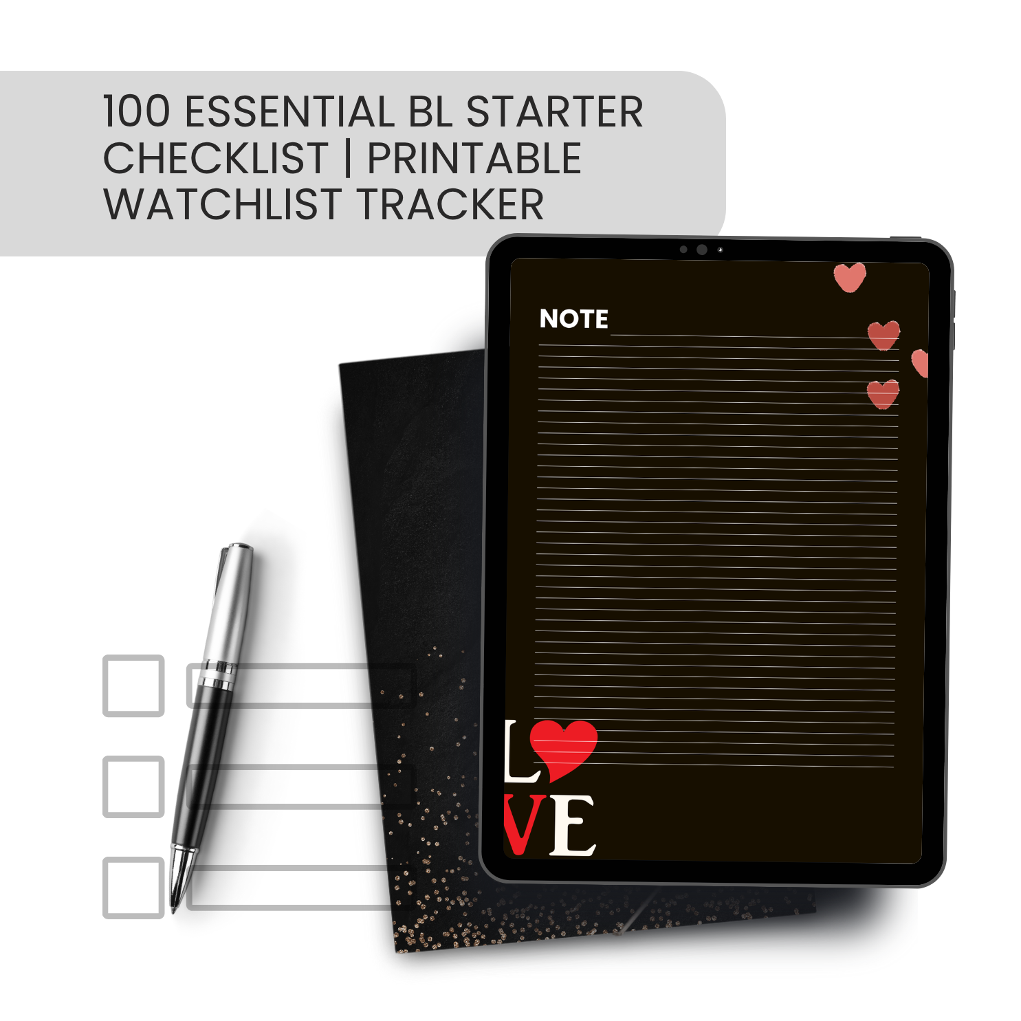 100 Essential BL Starter Checklist | Printable Watchlist Tracker (Boys’ Love)