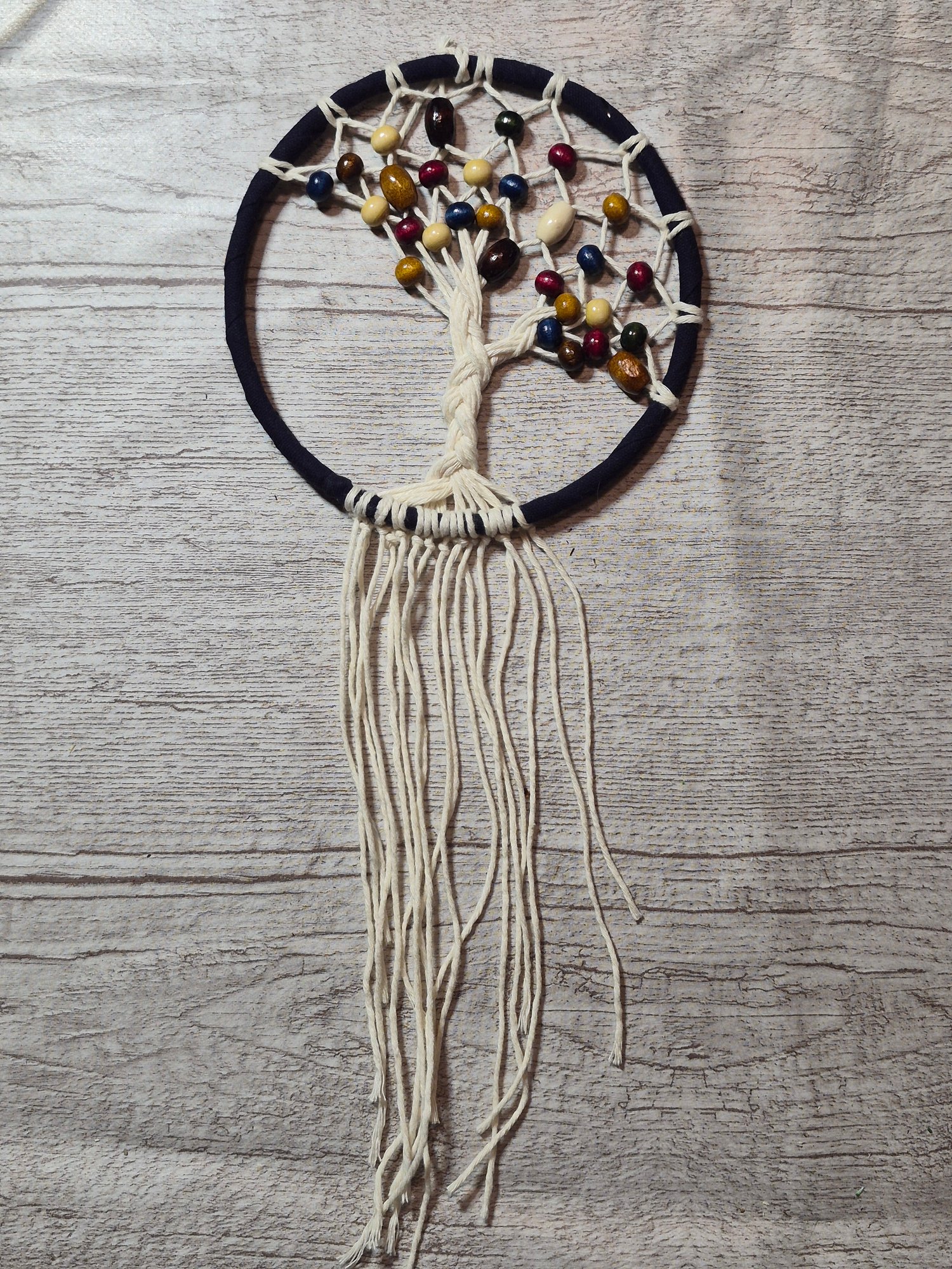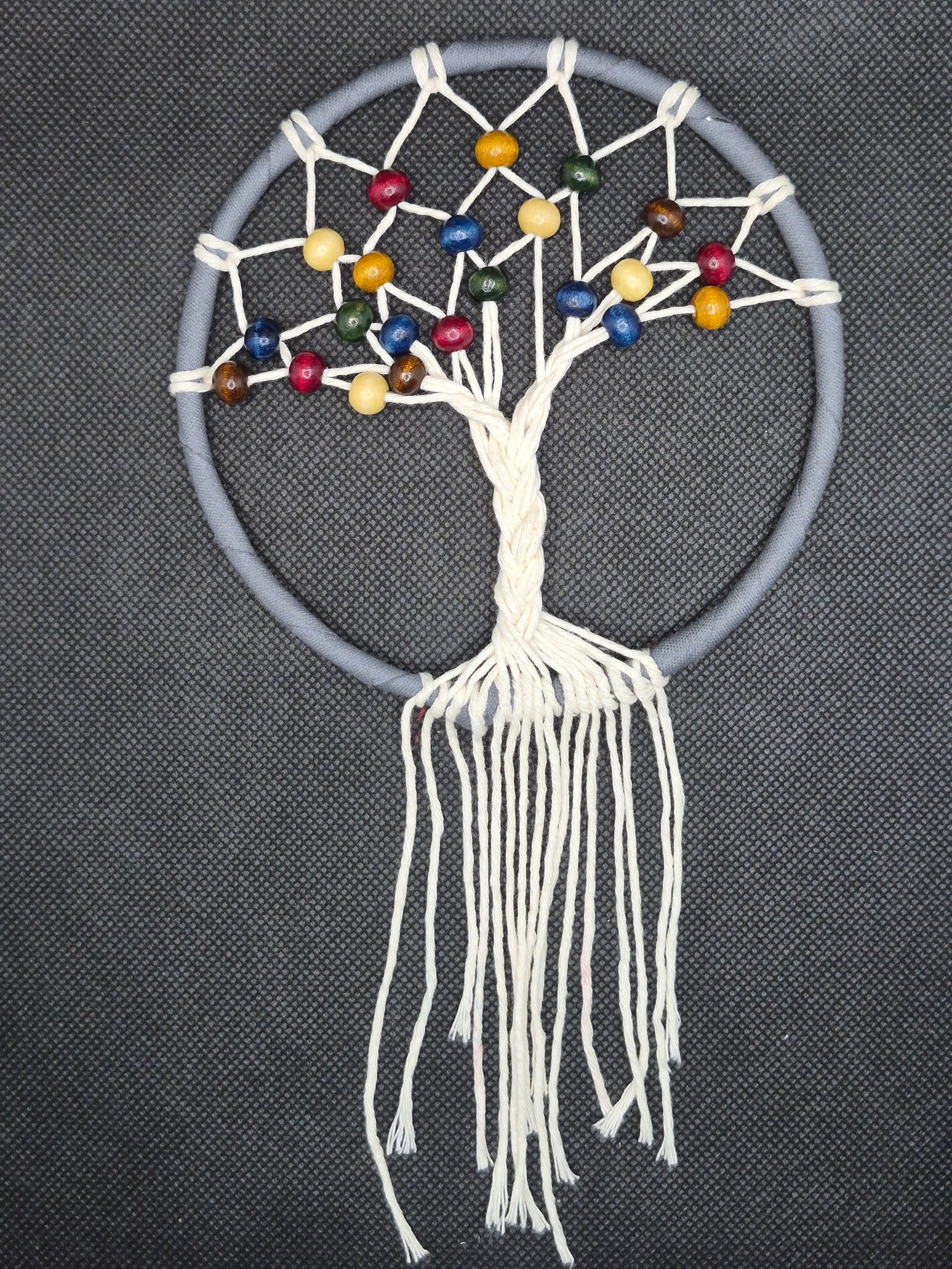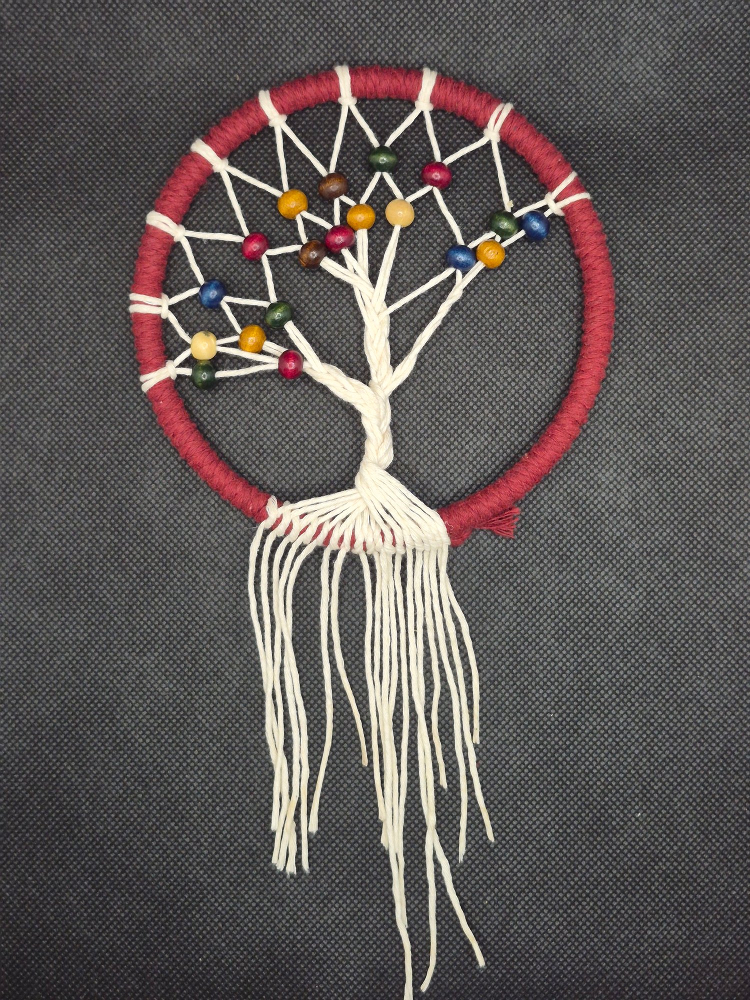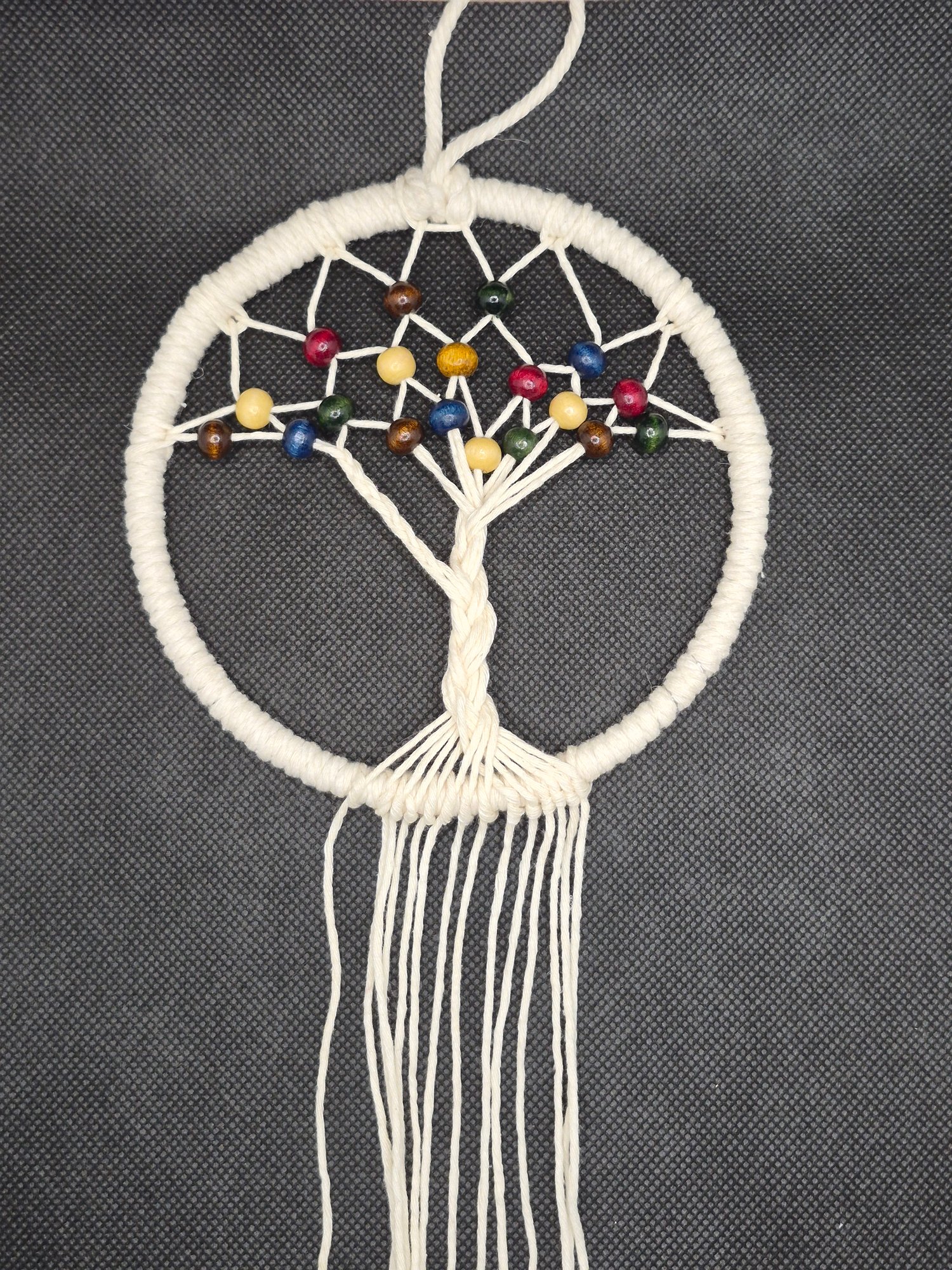 Varje träd är unikt, flätat för hand och dekorerat med pärlor i varma jordtoner som representerar fruktbarhet, visdom och balans.