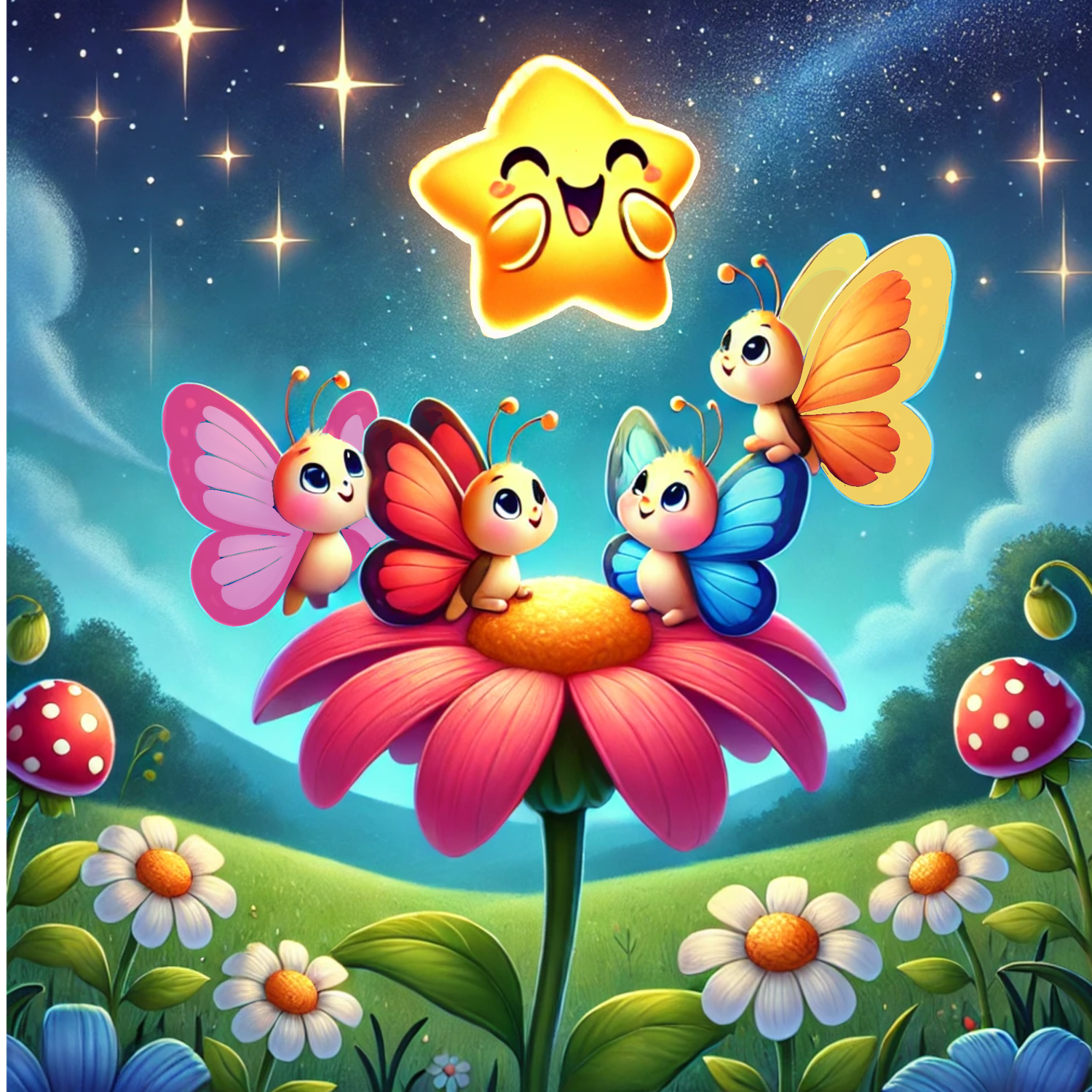 One magical night, The Flutterbys watch a shooting star streak across the sky, but instead of disappearing, it falls right into a puddle! The tiny star is stuck, unable to return to the sky where it belongs. Determined to help, the Flutterbys set off on a nighttime adventure.