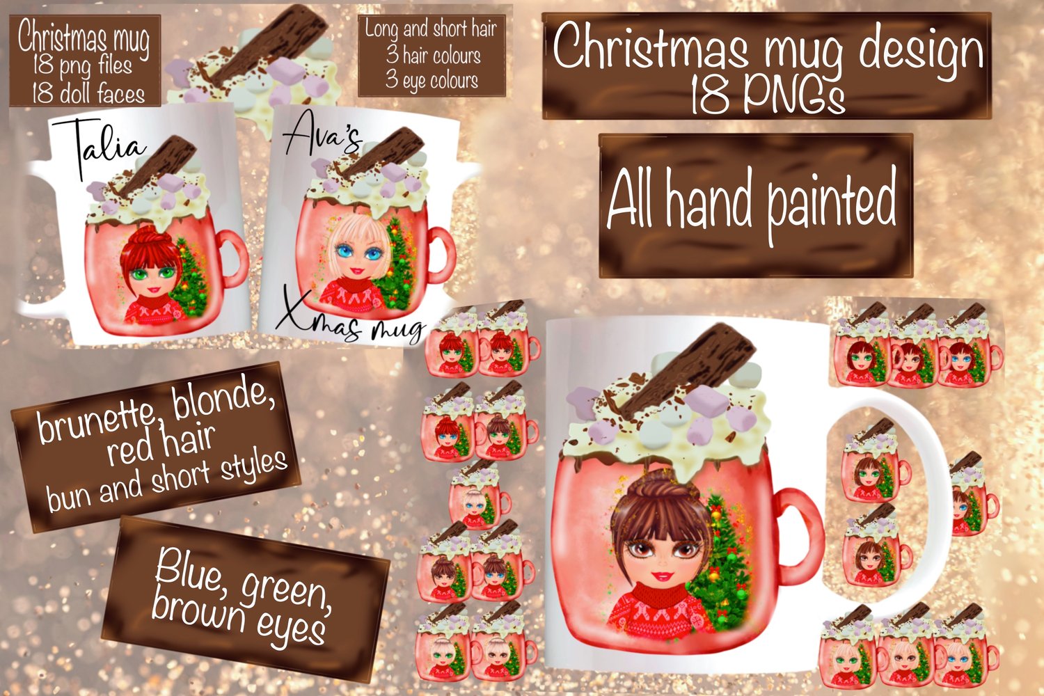 18 PNG files, each one has a Christmas girl on a red mug with hot chocolate, lashings of cream, marshmallows and a chocolate flake.