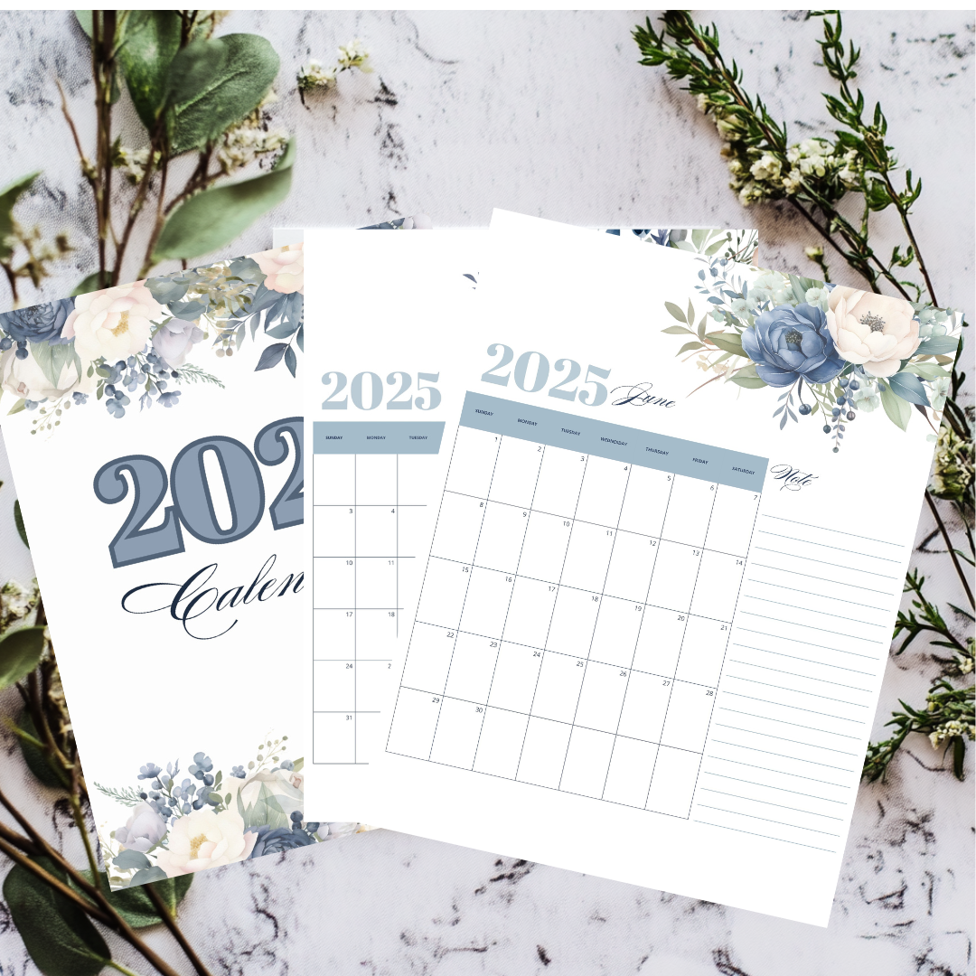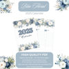 A A4 blue floral design 2025 calendar . digital download.This calendar is printable on A4. ready to print at your own convenience. you can also sell this printed ONLY for your small business . you will receive 2 files, which you will need to unzipped. The files will contain a full calendar and all individual pages.