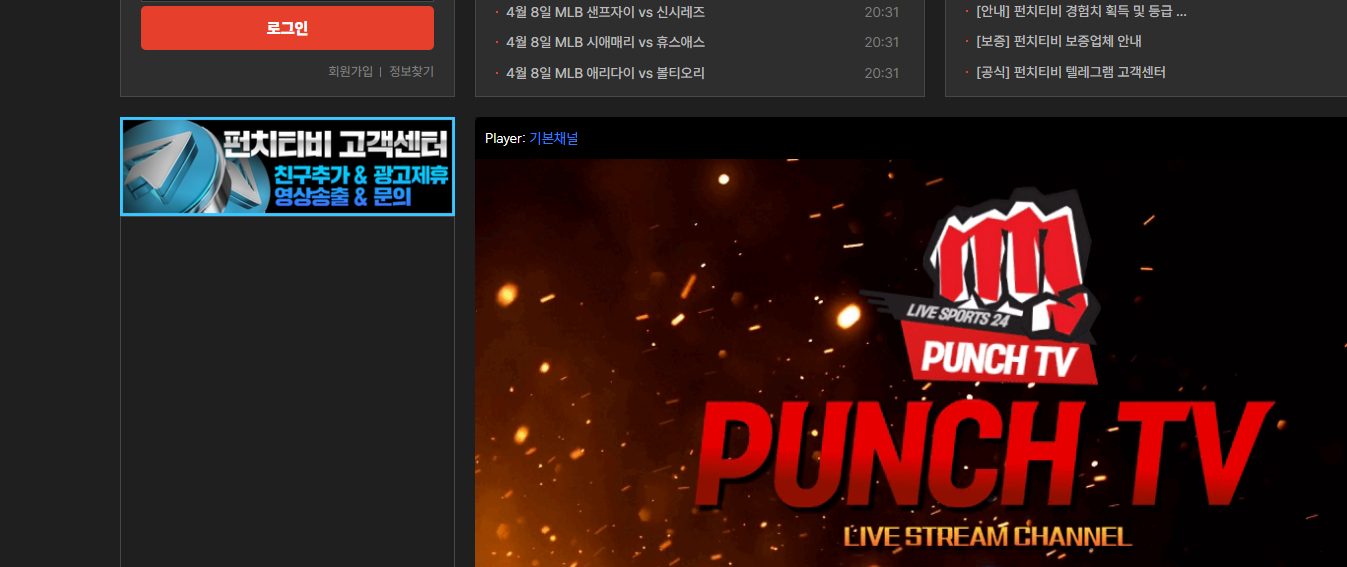 PunchTV24 공식 웹사이트에 접속