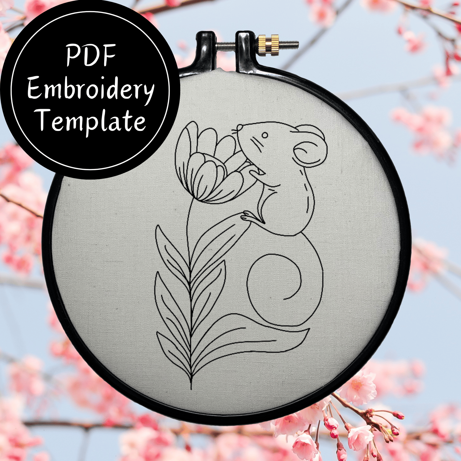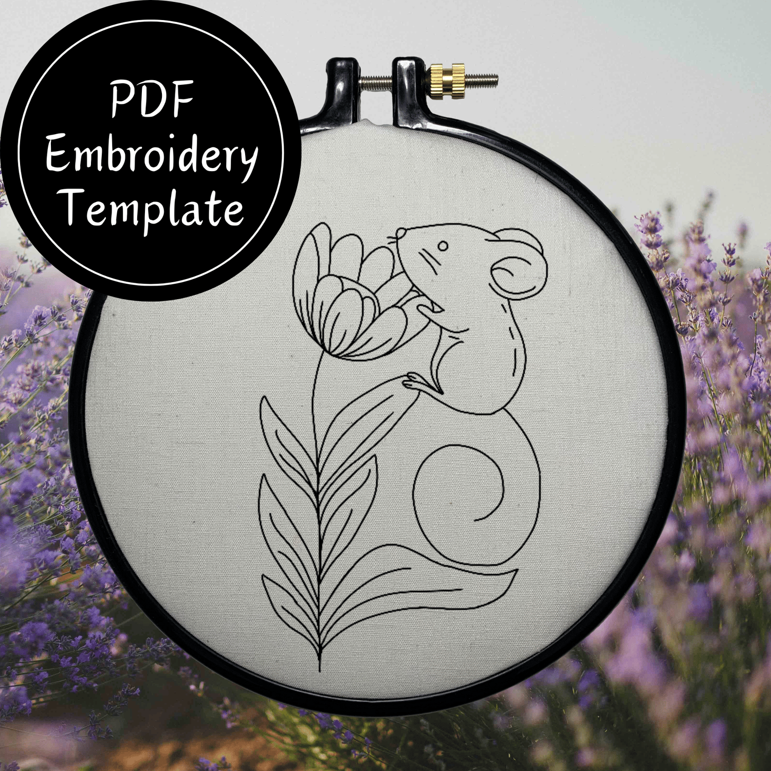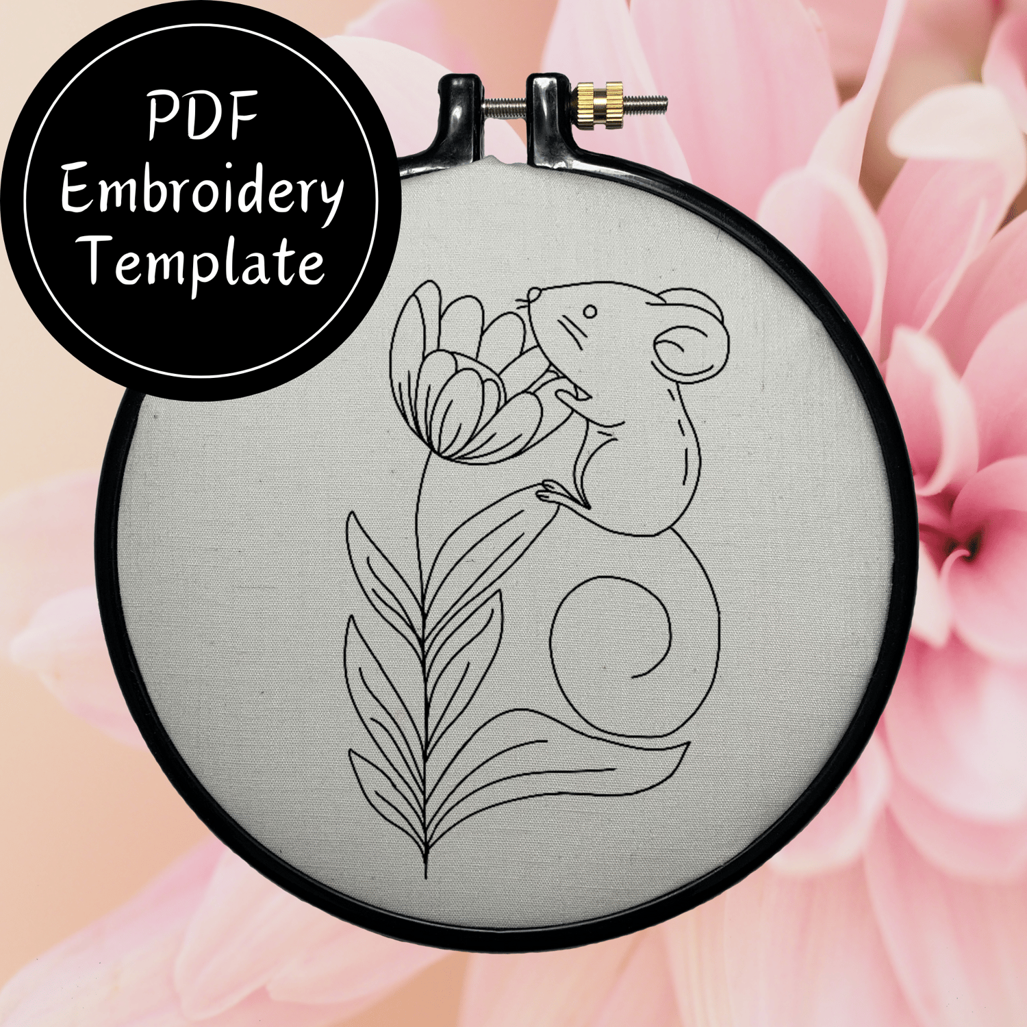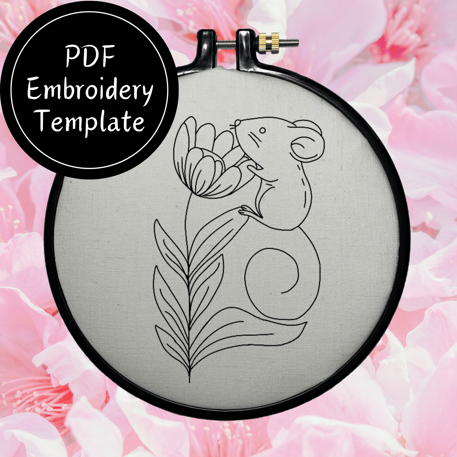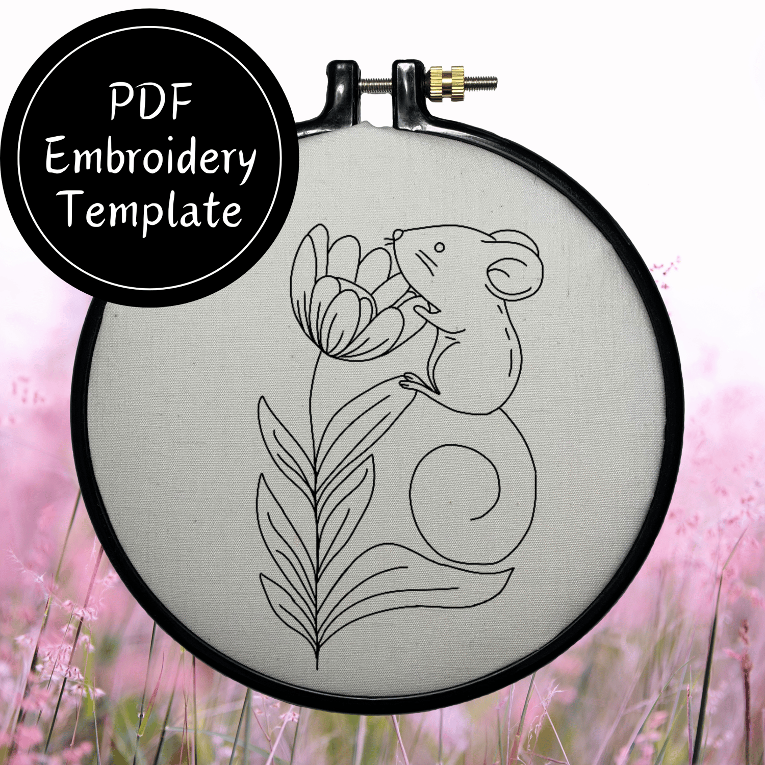 Mouse On Flower Hand Embroidery Pattern DIY Embroidery