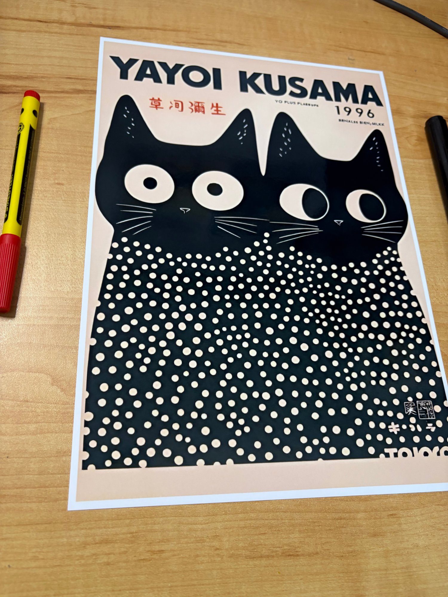 A3 Print Yayoi Kusama Duo cats Classic Style|Physical Copy