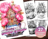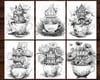 27 Blooming Teacup Fairy Homes Coloring Book, Adults kids Instant Download -Grayscale Coloring Book -Printable PDF, Flower Houses, Fairy