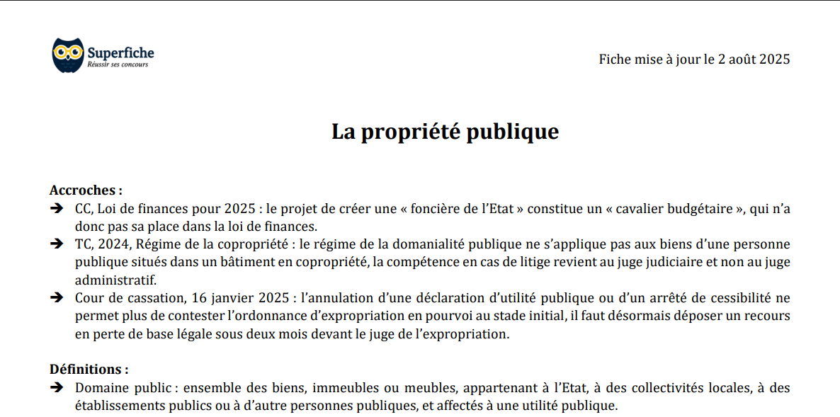 Fiche de préparation aux concours administratifs publiée par Superfiche.
