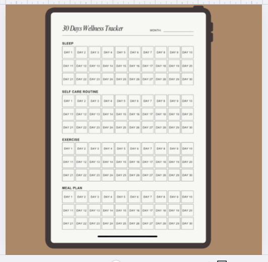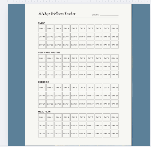 30 Days Wellness Tracker. {Sleep, Self Care, Exercise, Meal Tracker}