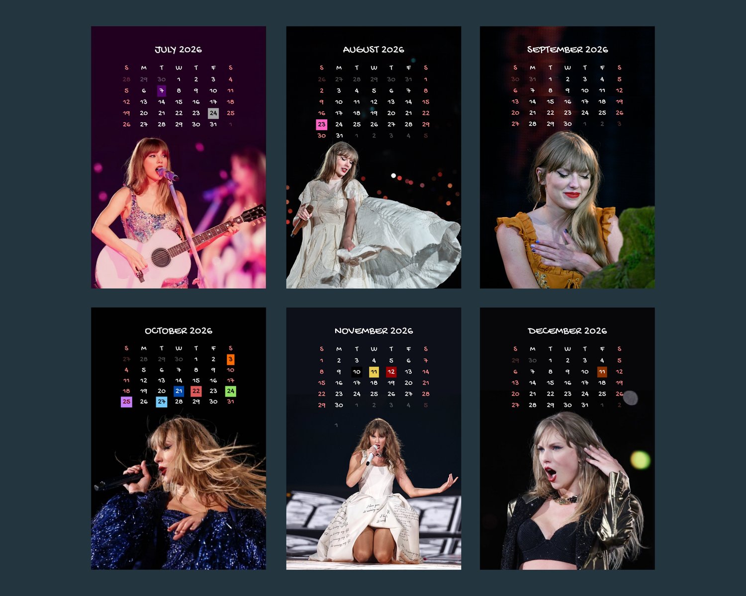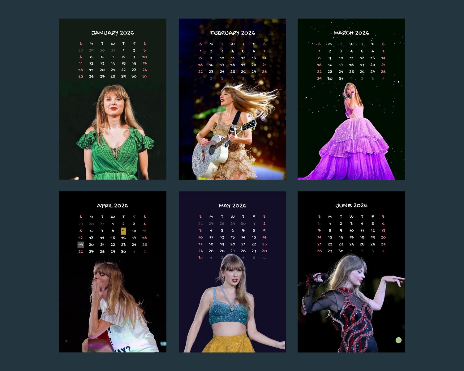 Taylor Swift Eras Tour 2026, Digital Calendar, Calendar 2026, Digital download