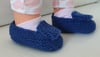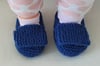 These 8ply garter stitch baby shoes have a wide foot strap which is knitted sideways.