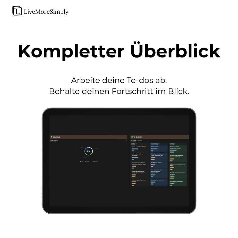 ✅ 30 vorgefertigte Umzugs-Aufgaben