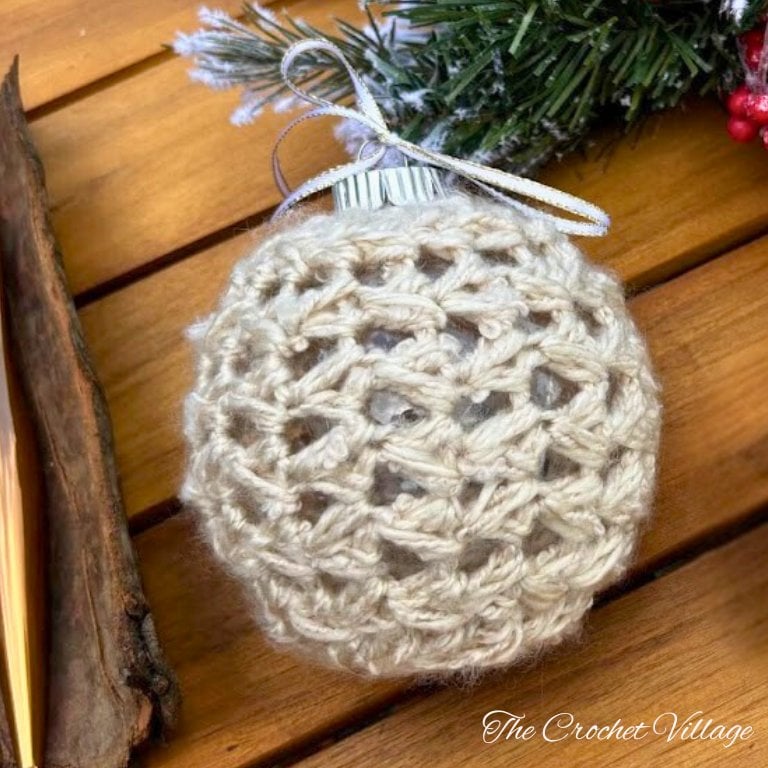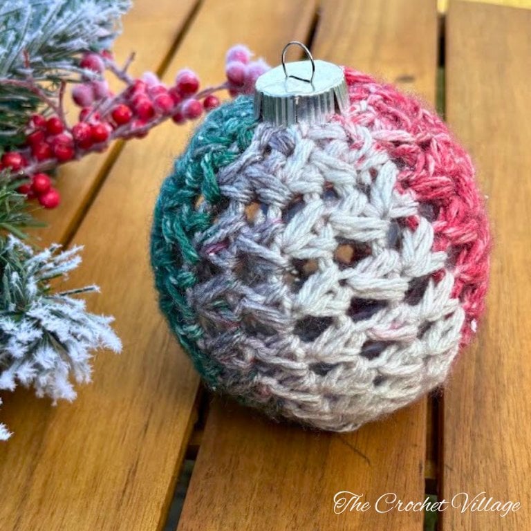 I designed it for a large bauble, but I’ve included tips so you can easily adjust it to fit any size ornament. It looks beautiful in both solid and variegated yarn and adds such a sweet handmade touch to your holiday décor.