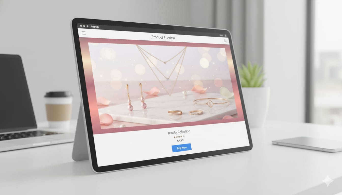 Perfect for jewellery stores and accessory shops, this banner has a premium, elegant look. The soft glow and marble base highlight the beauty of the jewellery, making it ideal for website headers or digital product displays.