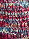 Are you second-guessing that bold colorway in your stash? Moxie’s syncopated twisted ribbing tames a daring yarn but retains the energy of high variegation. Worked from a single skein of sport weight yarn, the resulting cowl is more substantial than a lacy bit of nothing but more versatile than a worsted weight muffler. The bandana shape allows for coverage in the front and on the shoulders without the bulk behind the neck—perfect for tucking inside a coat.