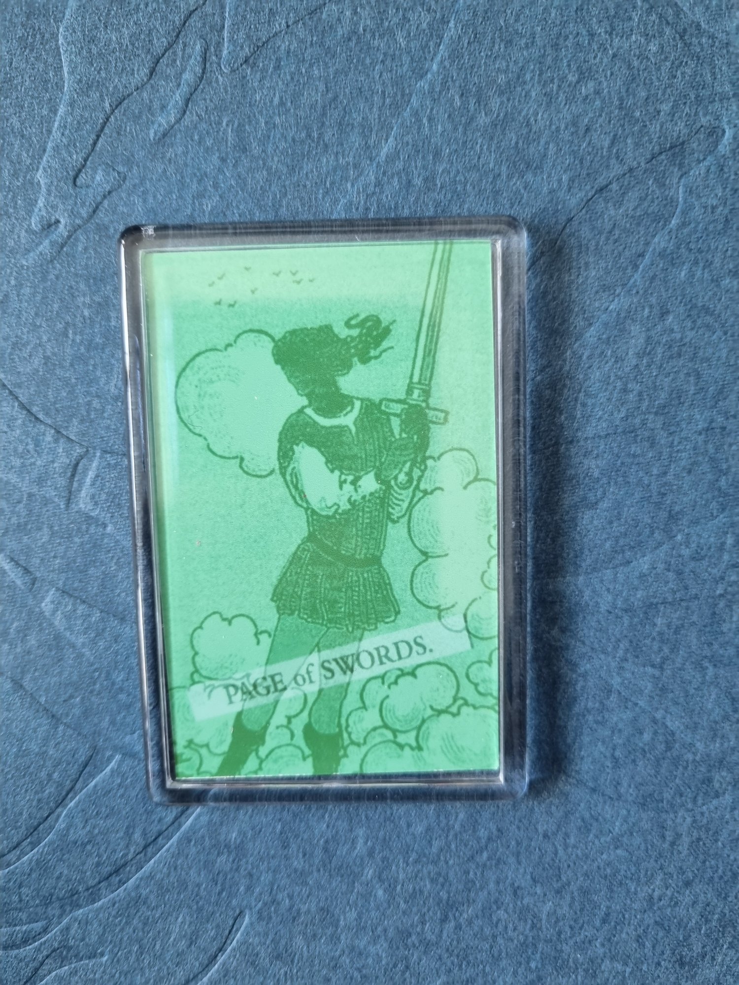 Funky & Stylish 'PAGE OF SWORDS' Tarot Card Fridge Magnet in a green design (5cm - 7.5cm)