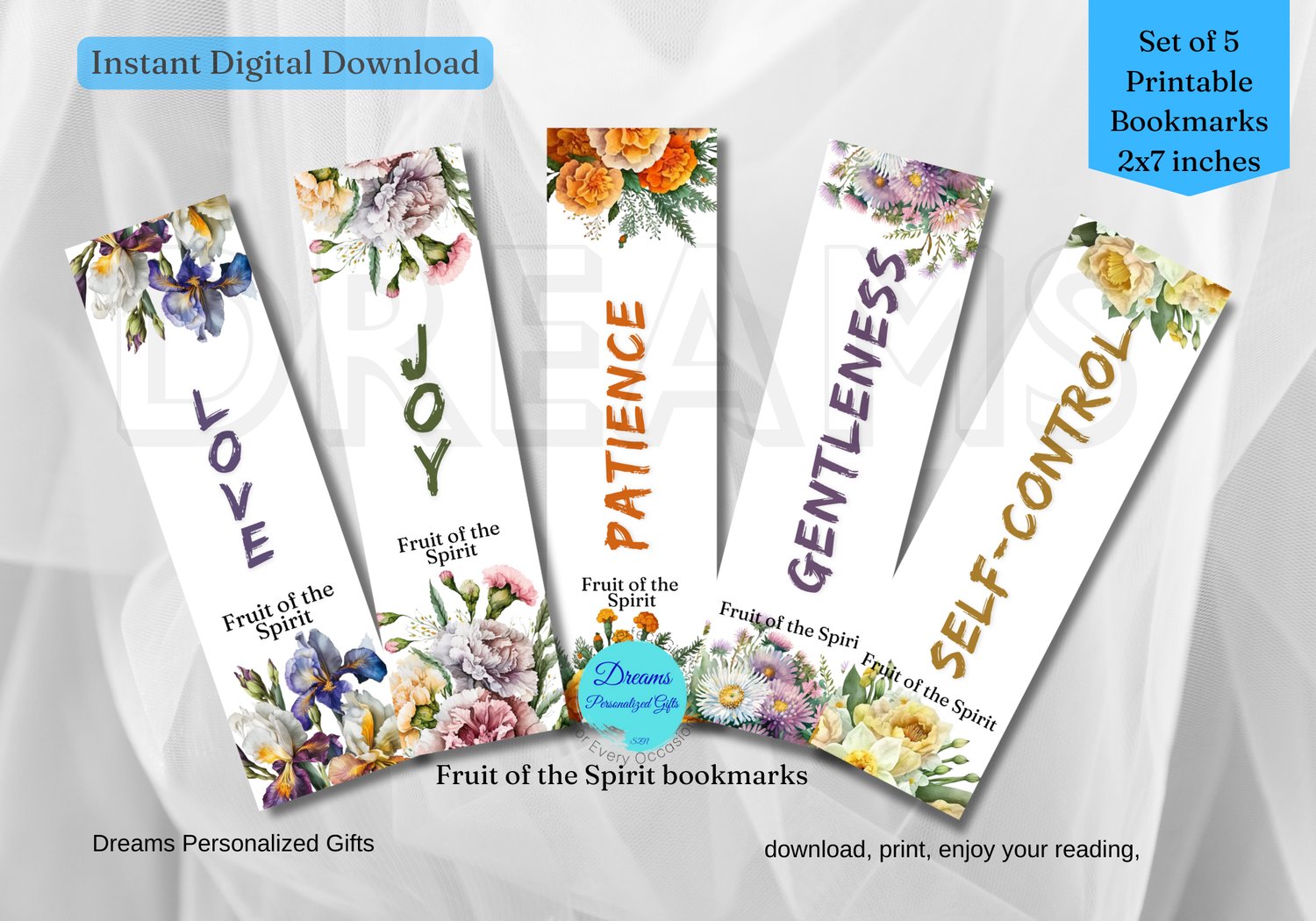 Printable Fruit of the Spirit bookmarks / Floral bookmark/ imspiratioanl bookmark/