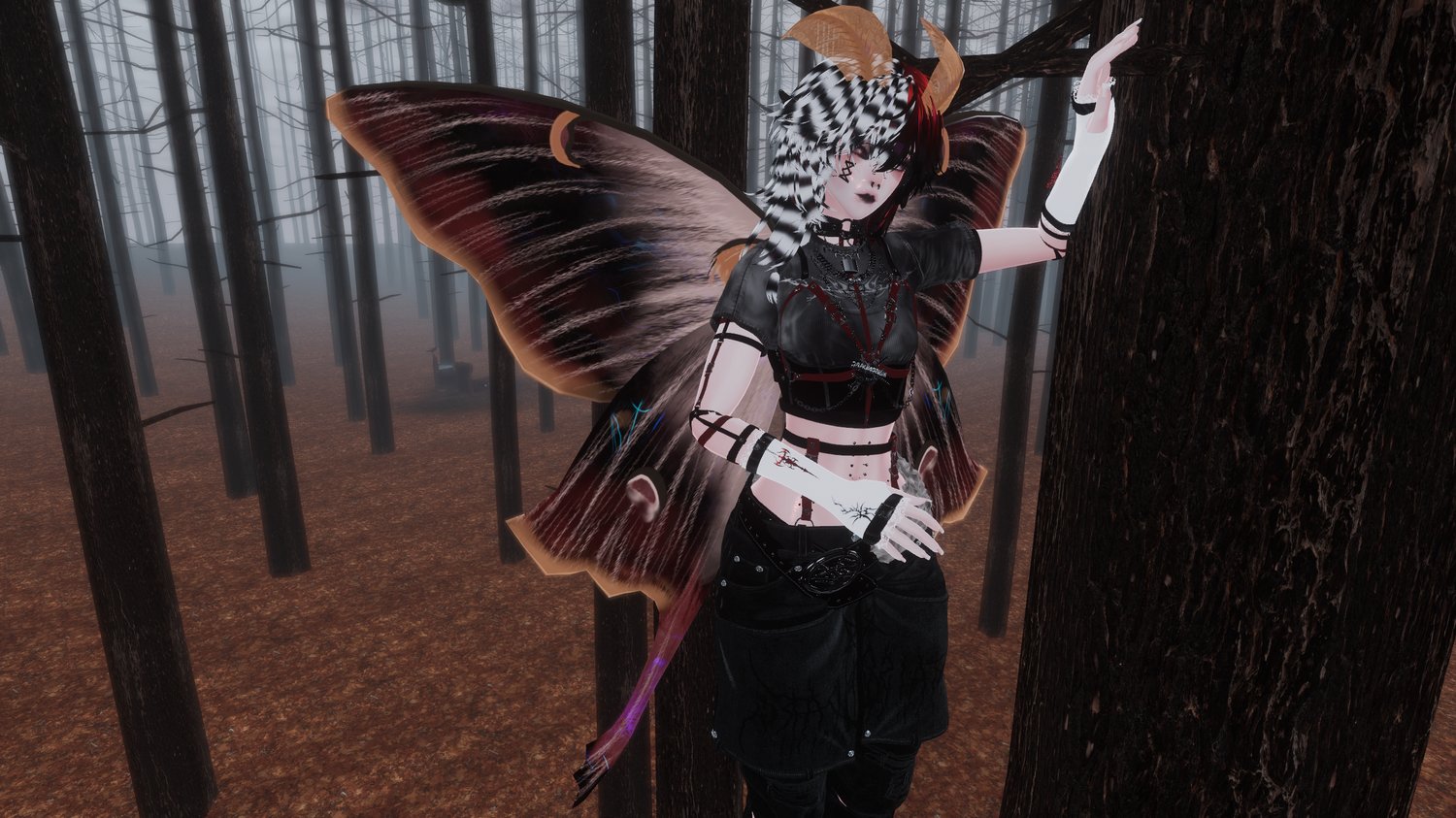 Species (Lunar Moth Set by Grey, Hear No Evil by TheRealThiccWitch, Animal Tail Pack by RottingHollow, DemogorgonTail by Enzie, and Slay Ears by OFFSET.)